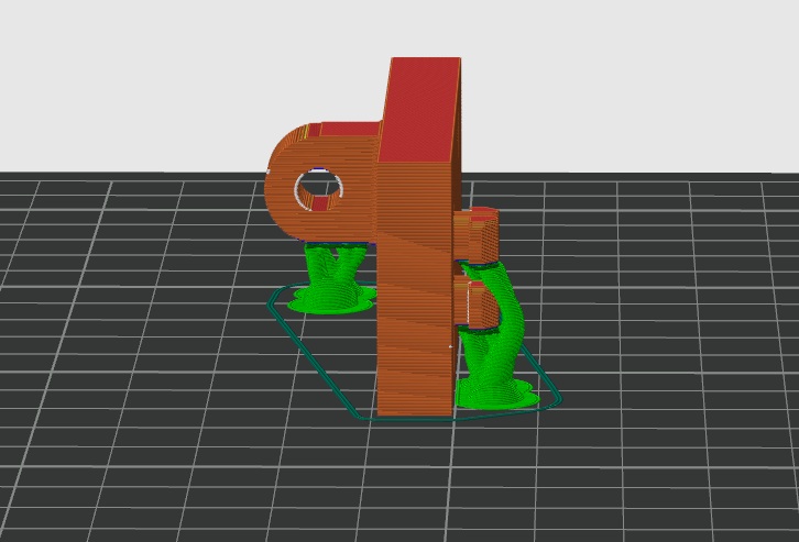 Nên in mẫu theo chiều nằm nghiêng (in on its side) và có supports, không thì phần v-slots sẽ không đủ cứng và rất dễ bị bể/gãy.