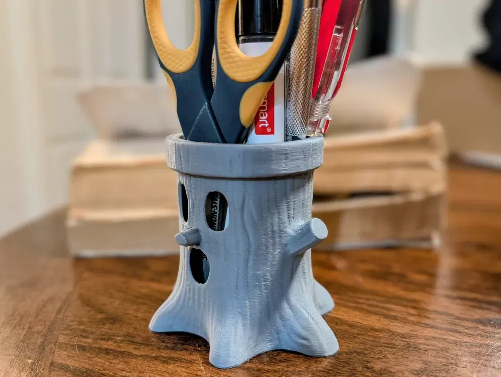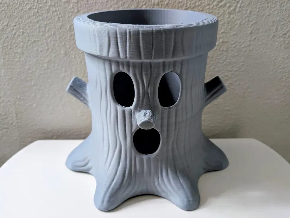 Mẫu organizer hình gốc cây vui mắt với vân gỗ mềm và các khoang rỗng tạo vibe fantasy. Dùng làm ống cắm bút, vỏ chậu/planter cover hoặc khay để đồ linh tinh. In một khối liền, nhẹ, dễ print và scale.