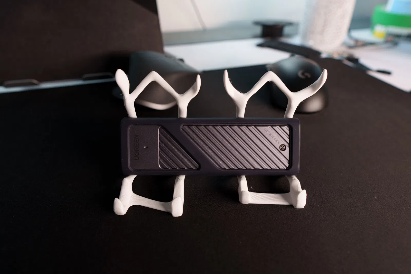 Stand khá cứng cáp và cũng chừa phần sensor để đảm bảo chuột vẫn ở chế độ "sleep" khi không sử dụng. Có thêm một khe để gắn SSD enclosure (mô phỏng theo loại Ugreen kích thước 43x17mm), giúp tăng độ ổn định khi bạn không đặt chuột lên, nhưng hoàn toàn không bắt buộc.
