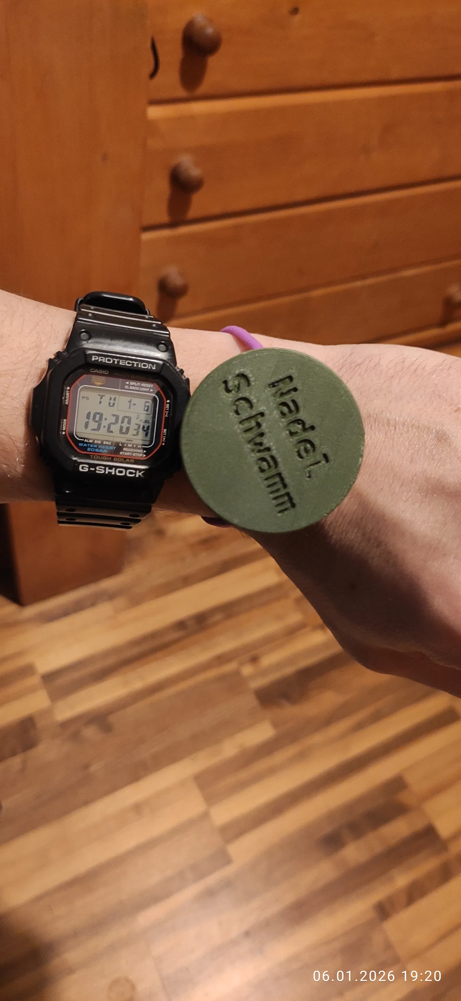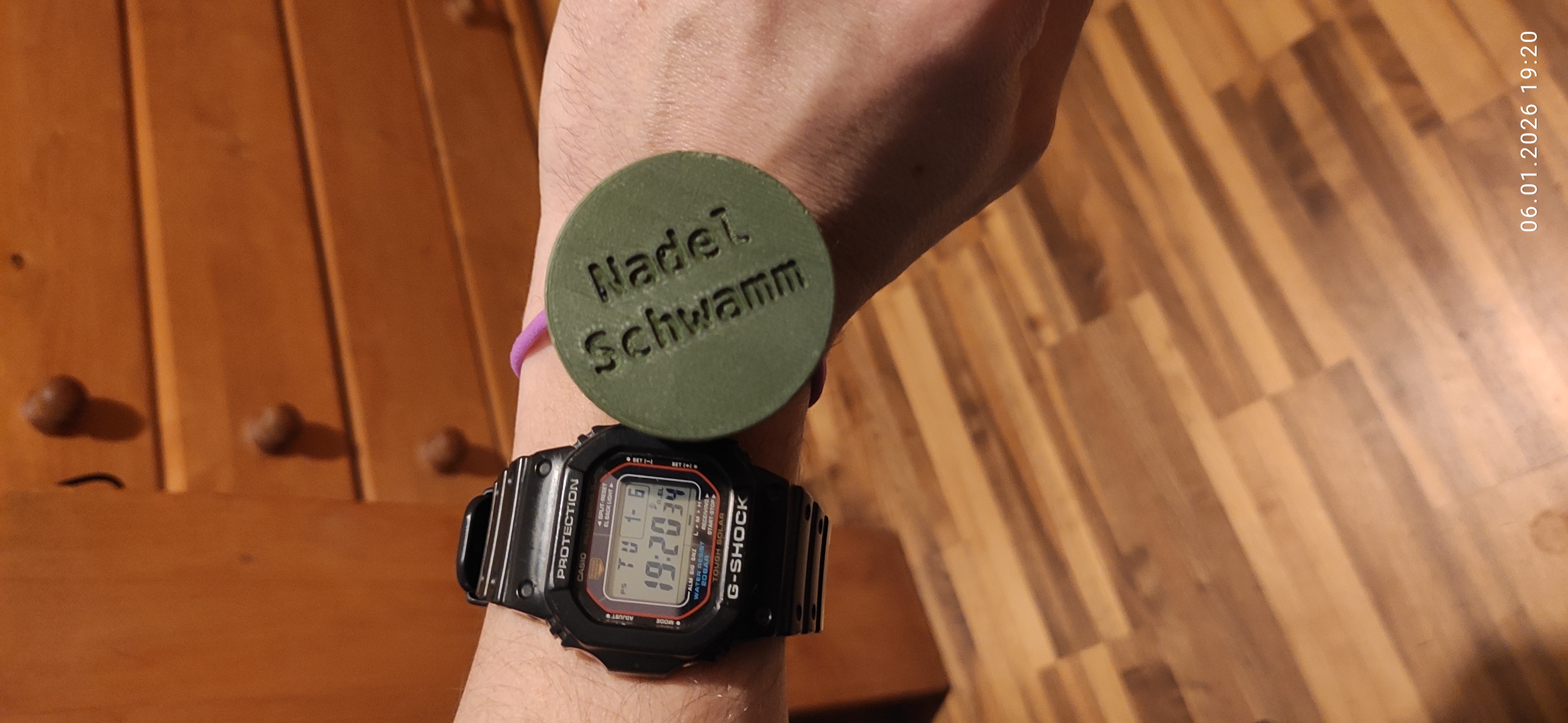 Chỉ cần cắt miếng sponge đúng kích thước, bọc lại bằng vải cũ, nhét một sợi dây cột tóc bị giãn vào phần holder của Nadelschwamm, đặt sponge lên trên là xong.