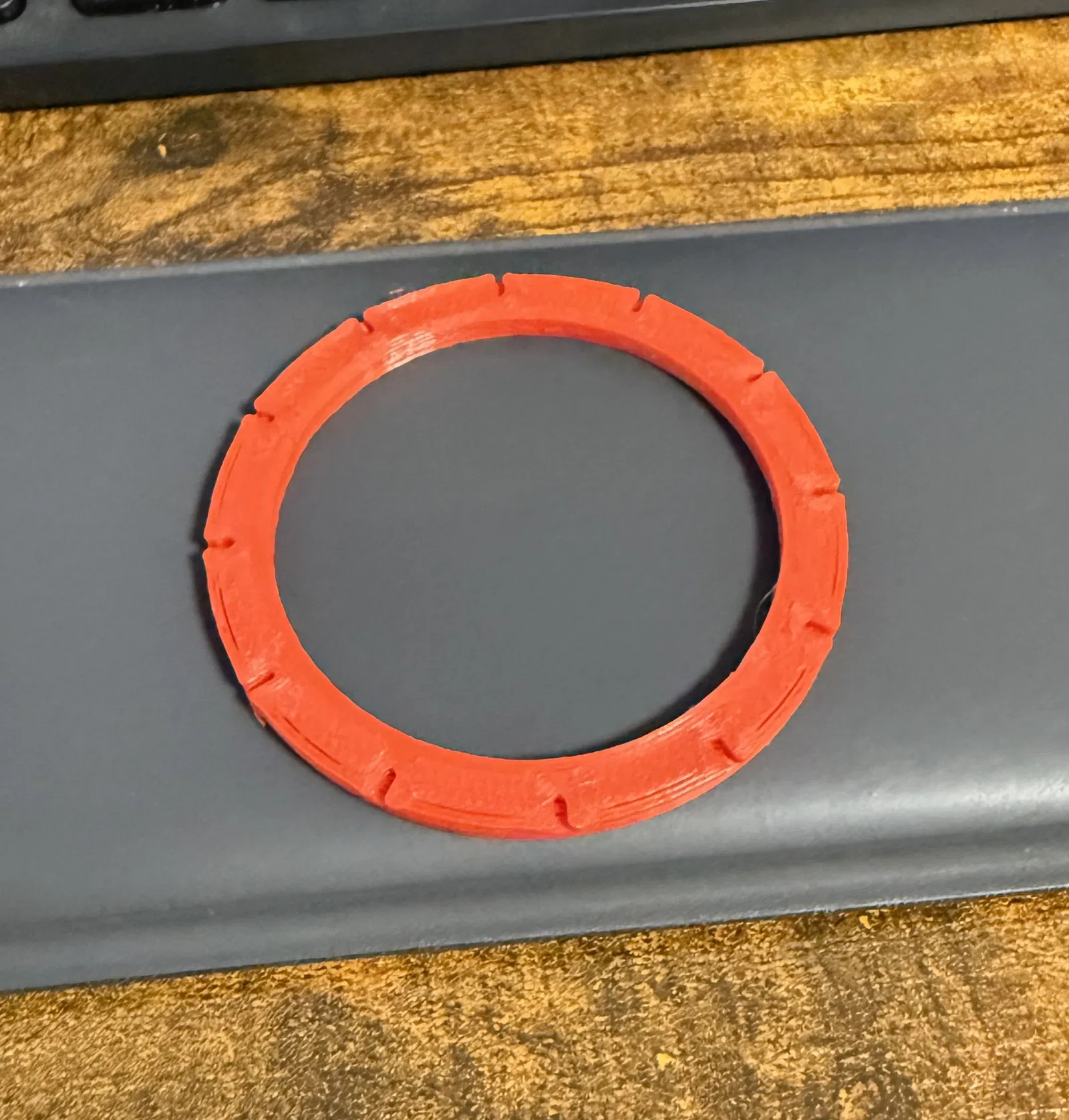 Mẫu này gần như y hệt bản trước của mình (có thể xem ở link đó). Mình thêm 12 vạch tick khắc chìm vào bề mặt, rất dễ canh theo vòng ngoài. Nhờ vậy lúc đo đạc, bạn có thể yên tâm là mình đang đo gần như đúng theo một đường thẳng.
