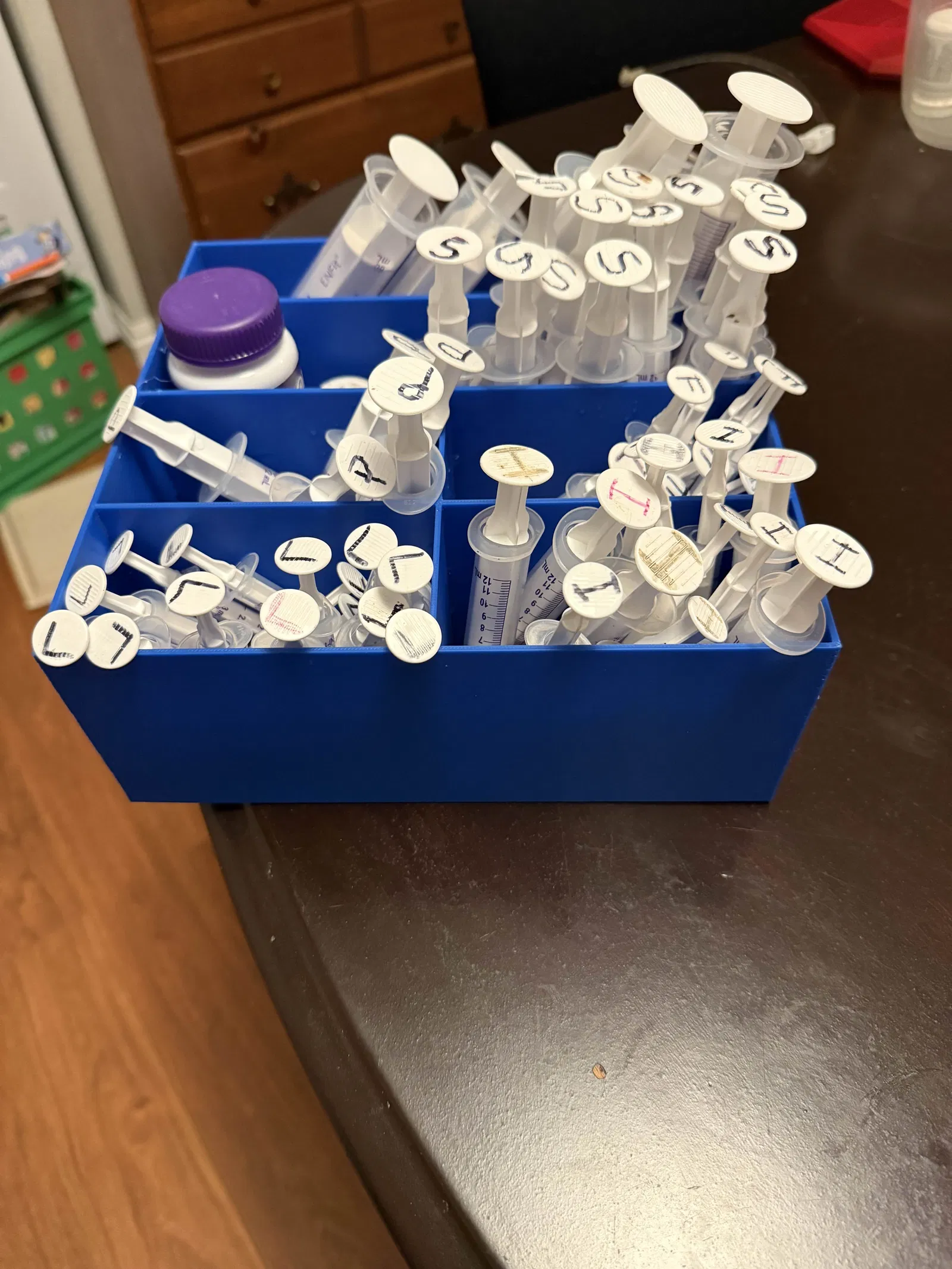 Hộp organizer này được thiết kế để hỗ trợ quản lý nhiều loại thuốc và ống tiêm GTUBE trong quy trình chăm sóc hằng ngày. Việc phân loại thuốc, chuẩn bị liều, và theo dõi còn lại bao nhiêu rất dễ trở thành một việc lặt vặt mệt đầu, nên mình làm cái hộp này để mọi thứ gọn gàng hơn và đỡ căng thẳng hơn.