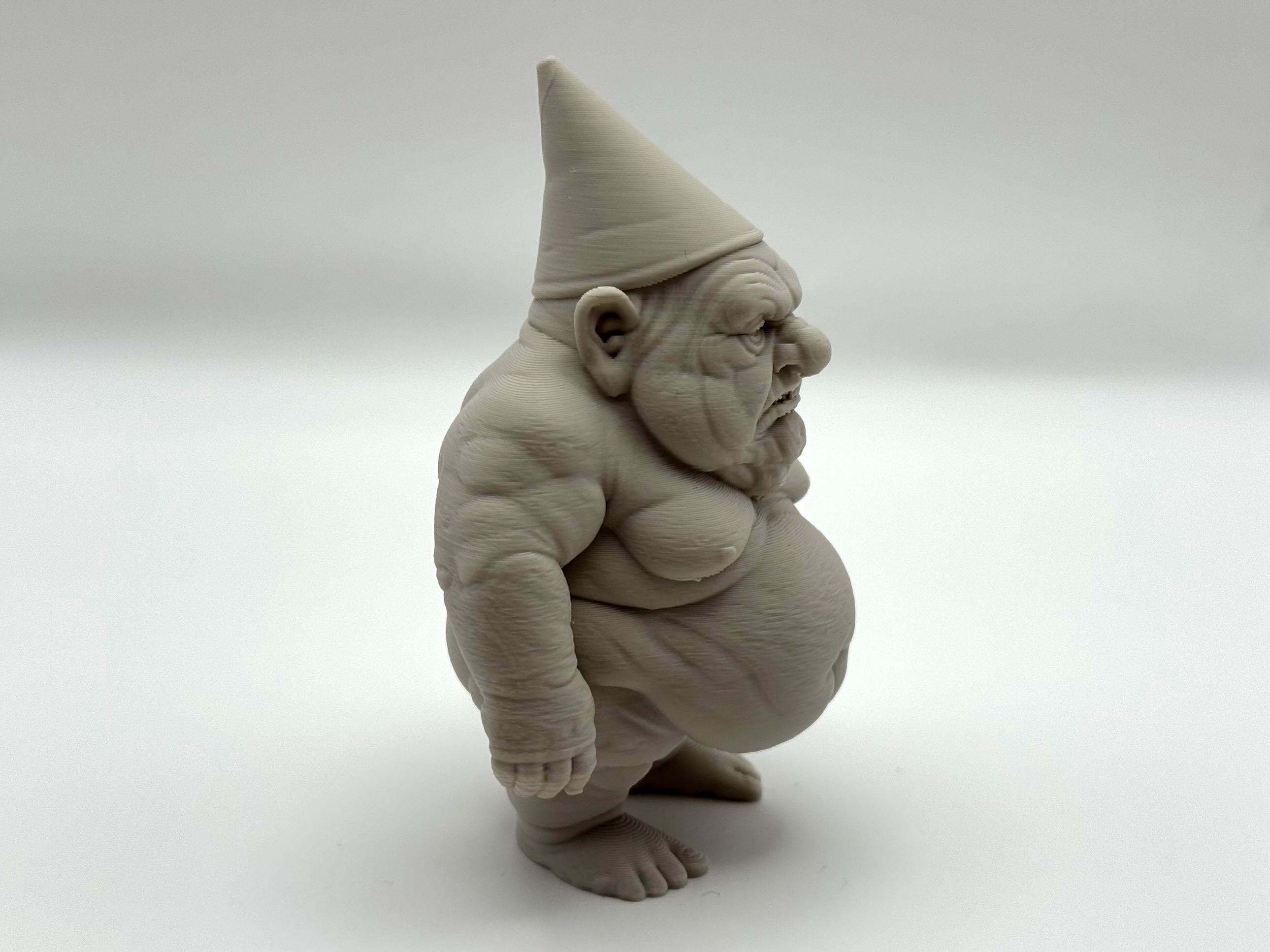 Gross Garden Gnome là mẫu ông lùn vườn cau có, xấu lạ mà vui mắt, hợp để đổi gió cho góc décor. In cần ít supports; dùng organic supports bóc ra sạch, và chỉnh Z-top height để tháo dễ hơn.