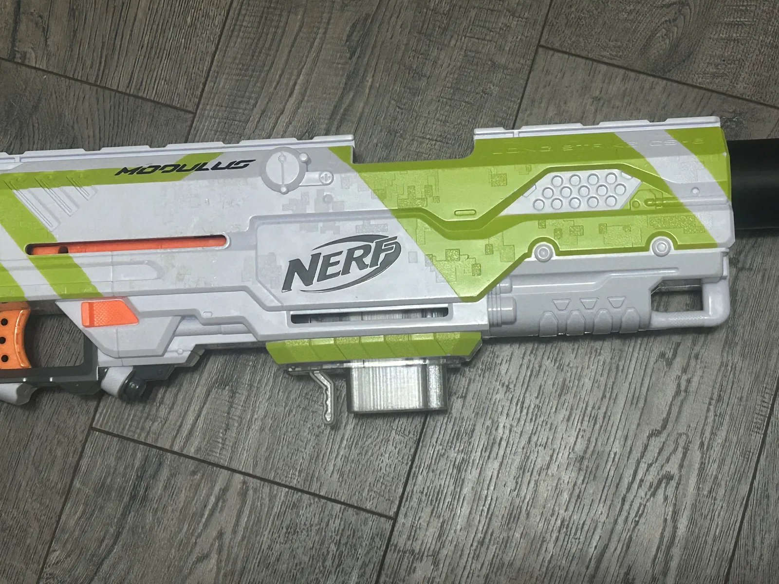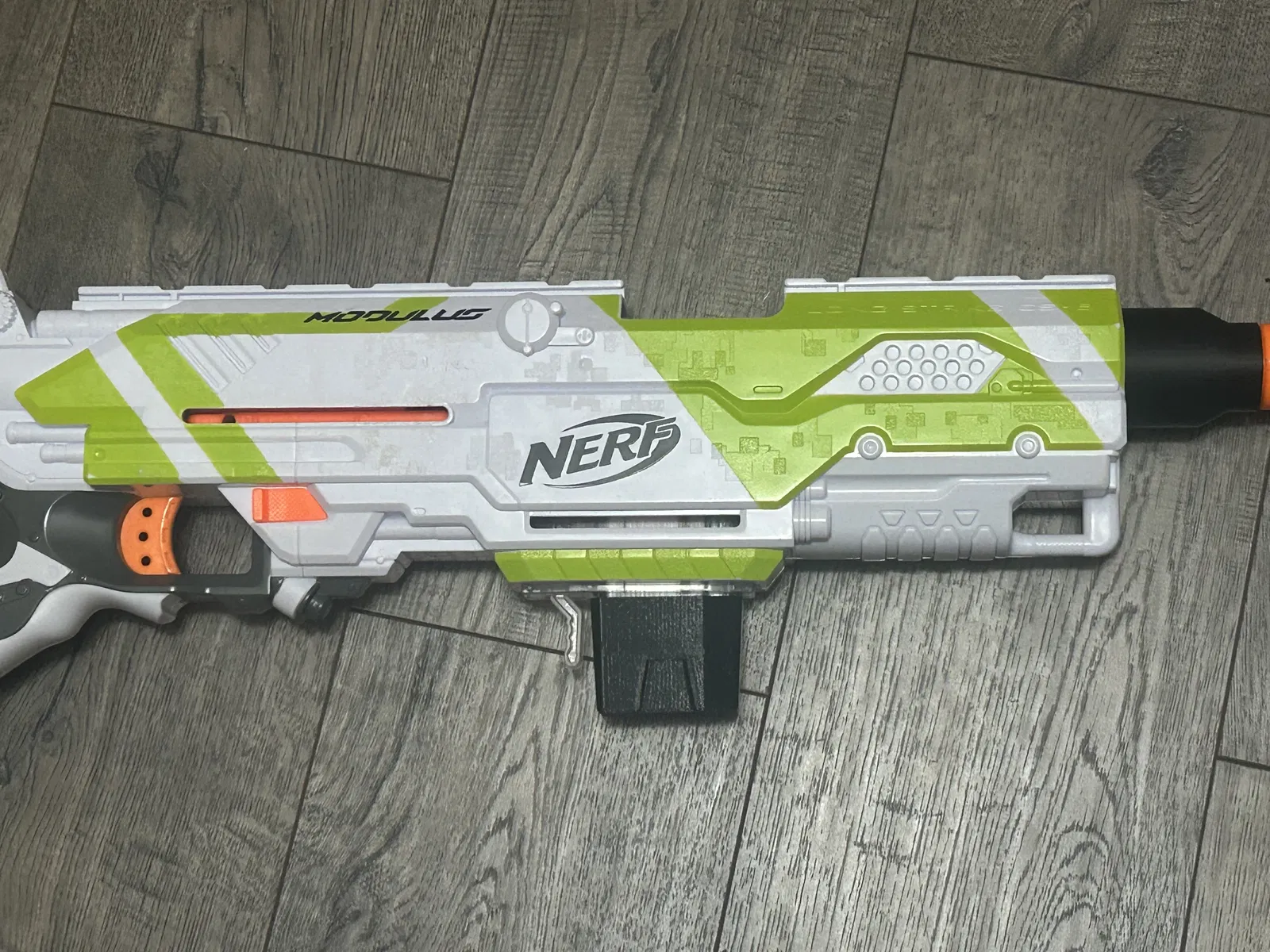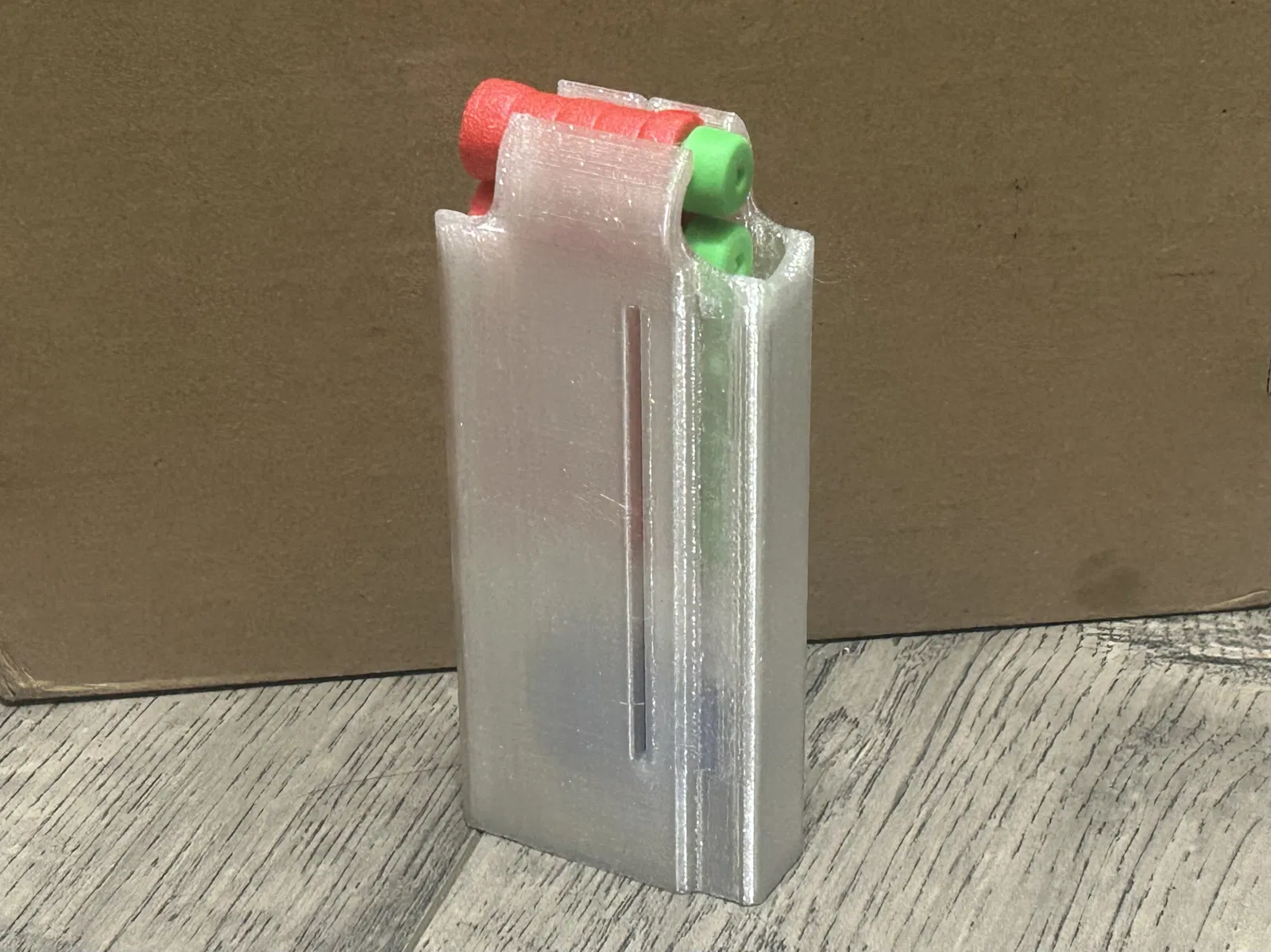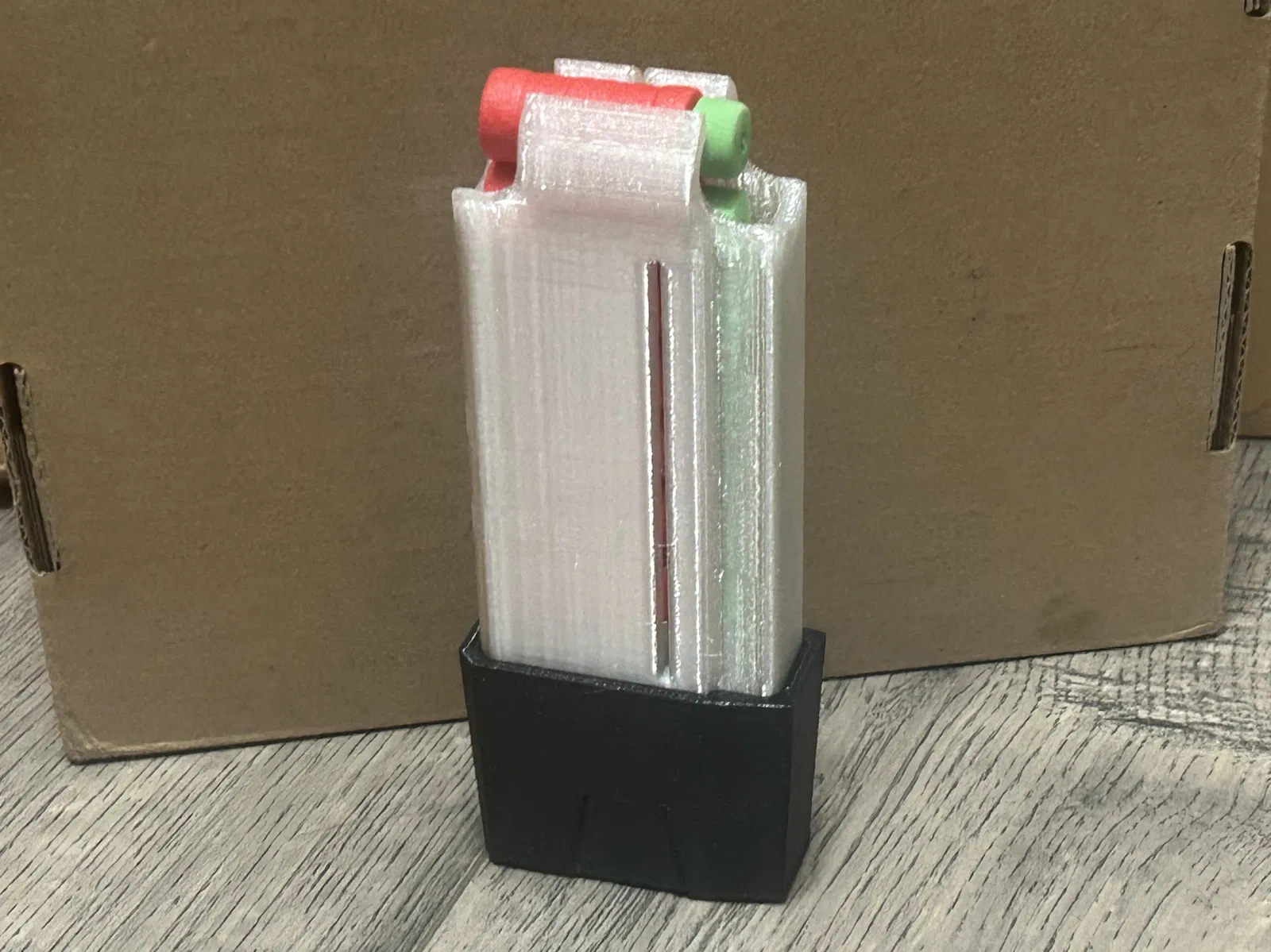Muốn set up nhìn như sniper cho blaster? Mẫu magazine Talon 5–7 viên kiểu lanyard pulley này in xong dưới 2 giờ. Có thể nhét 5 viên (không bumper) hoặc 7–8 viên nếu dùng bumper và dart mềm.