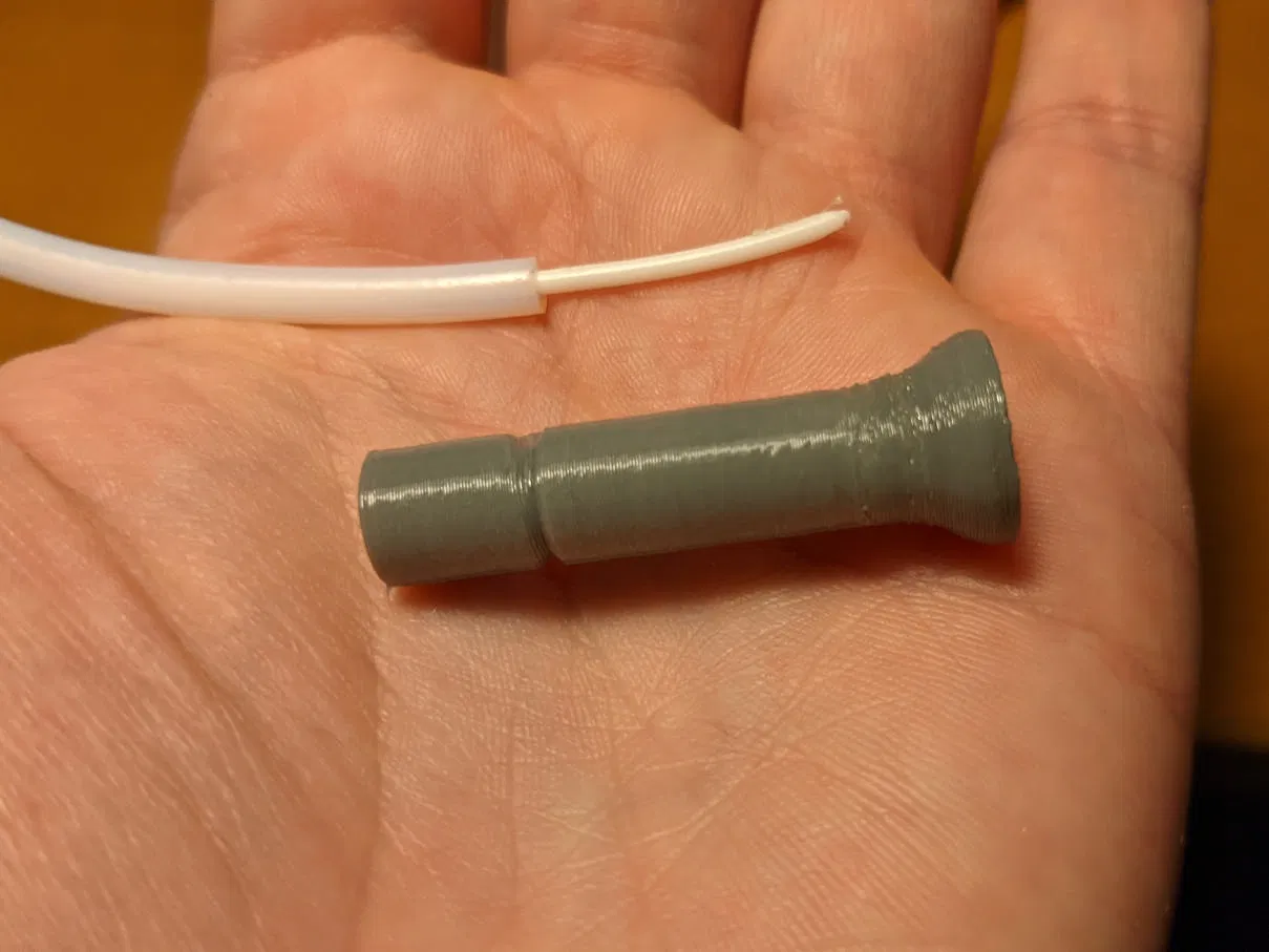 Nút bịt đầu PTFE (PTFE Cap / Endplug) dùng cho hộp/hũ sấy filament drybox. Thiết kế giúp tiết kiệm 1 PTFE coupling, giữ filament không tụt sâu vào ống, dễ lấy sau khi mở nắp. In không cần supports, khuyên dùng TPU.