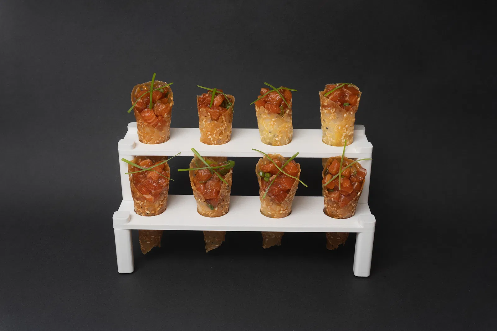 Kệ trưng bày cone 2 tầng, giữ tối đa 8 chiếc cone. Phù hợp để bày biện các món sáng tạo trong ẩm thực như món khai vị, cone kem và nhiều kiểu trình bày khác.