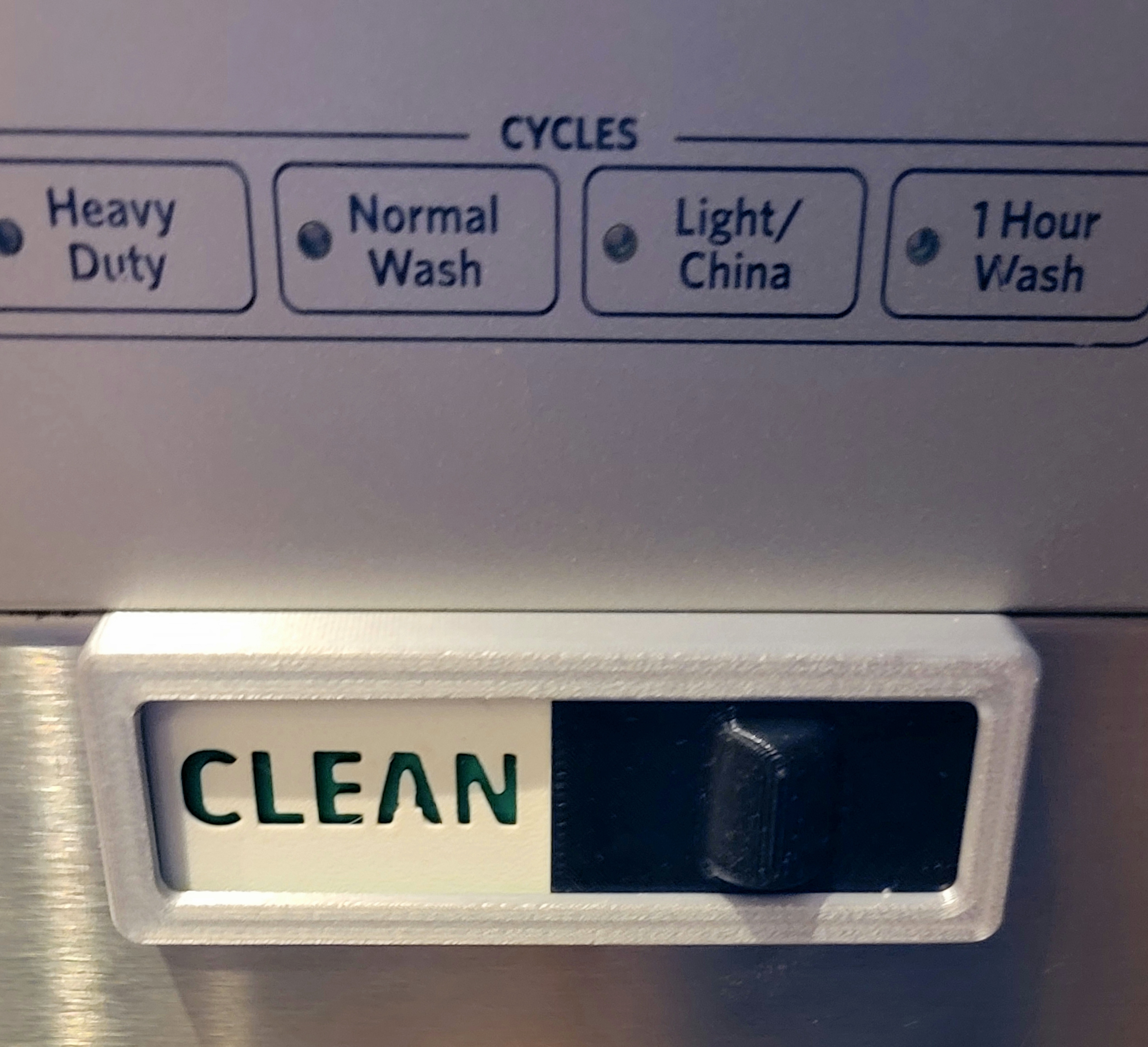 Đây là bản remix từ mẫu dirty/clean dishwasher sign rất hay của Printess. Điểm khác là phần đế được in theo phương đứng với hai màu filament, đổi màu giữa chừng ở khoảng 45mm. Nhờ vậy, các “mask” chữ Dirty và Clean có thể hiển thị font với màu khác nhau như trong hình minh hoạ ở đây. Thành ra nó là kiểu đa-màu nhiều lớp luôn :-). Ngoài ra, phần cover giờ che kín toàn bộ hai bên hông của đế để phần đế đa màu được giấu đi.