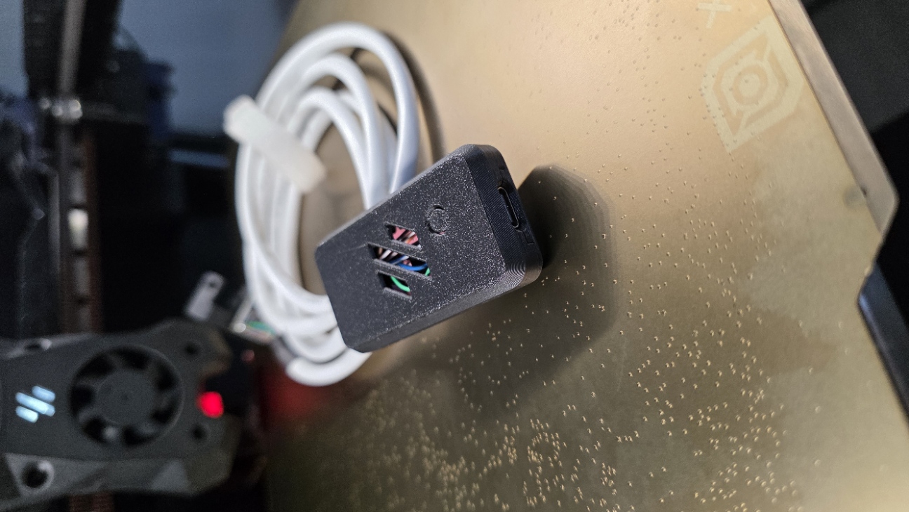 Vỏ USB C cho Raspberry Pi Pico dạng snap-fit gồm 2 phần, không cần ốc. Mặt sau chừa hở để đi dây, tiện để gắn và kết nối ADXL345 phục vụ input shaper khi cấu hình Klipper.