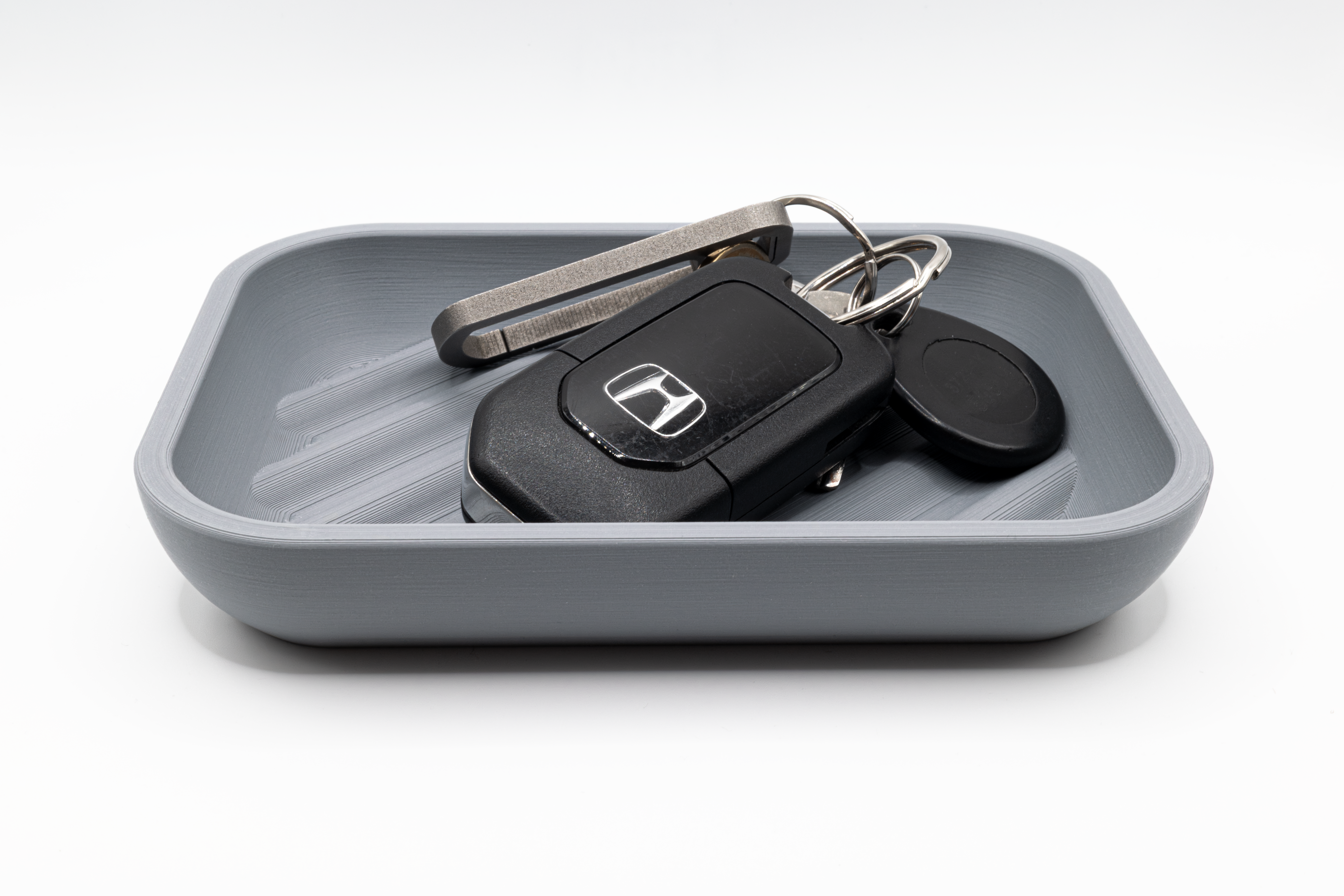 KEY BOWL WAVE là khay đựng chìa khóa giúp bạn khỏi làm rớt hay thất lạc. Thiết kế đáy bowl họa tiết wave nhìn đẹp mắt, lòng trong 134×94×19mm. In PLA, infill 20%, surface pattern Concentric, không cần rafts hay supports.