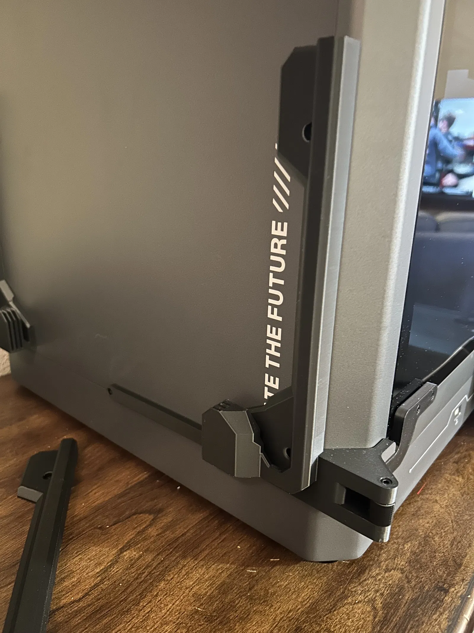 Gộp top glass holder và bản lề 270° thành một chi tiết liền khối cho Centauri Carbon, tránh xung đột khi lắp. Không cần spacer/bracket. Dùng 2 vít M3x30 + đai ốc M3, tổng cộng 5 phần in để hoàn thiện.
