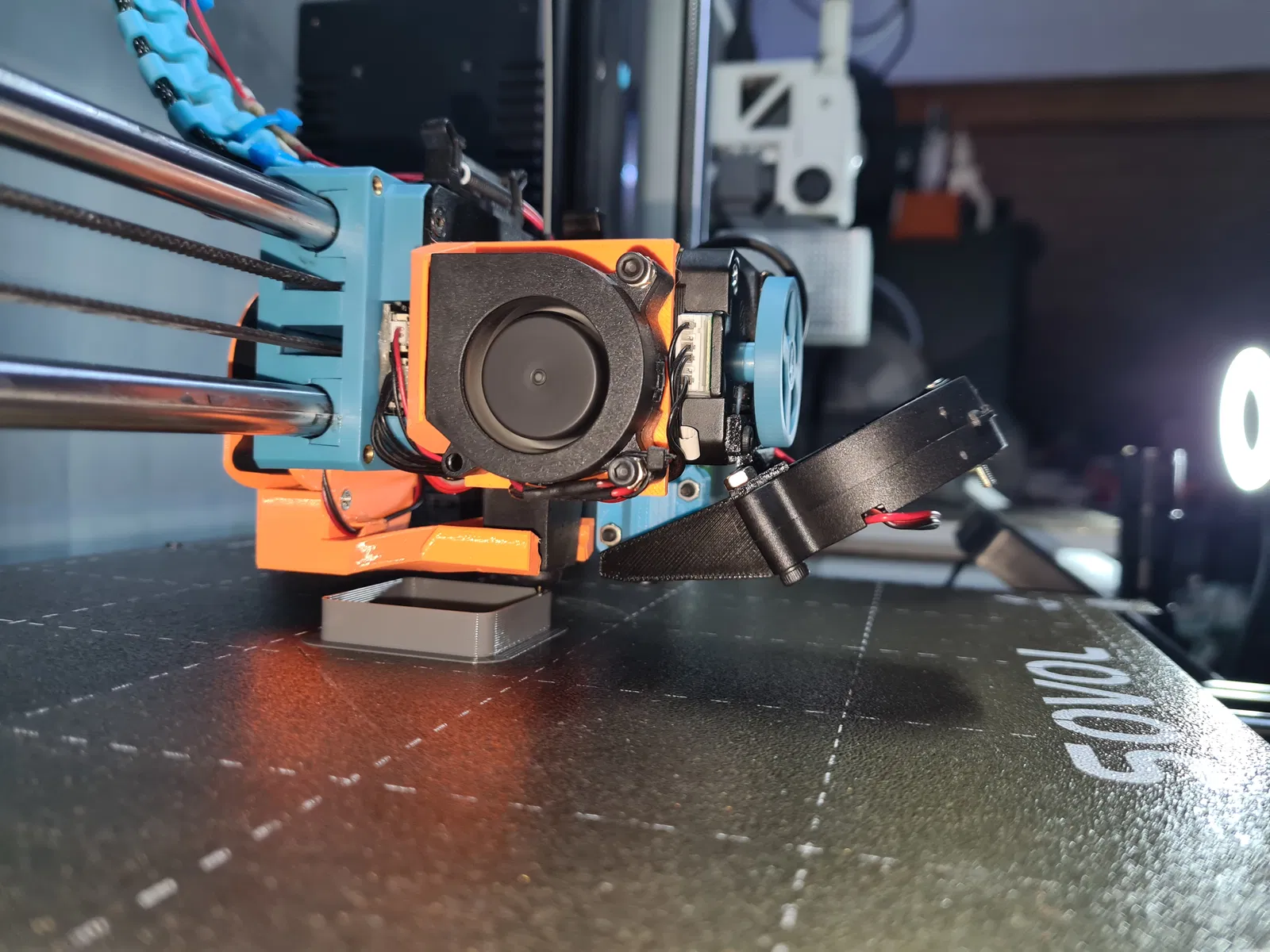 Nên mình chỉnh lại cái fan duct này để nó canh chính giữa ngay trước nozzle. Với mình thì chạy rất ngon, và khi kết hợp với mod NAV 5015 fan thì nó có thể làm mát vật liệu ổn định ở tốc độ in 40mm/s với volumetric flow 14mm³ (layer height 0.5 và line width 1.0mm) ở nhiệt độ in 230°C. Có thể chịu được hơn chút nữa.