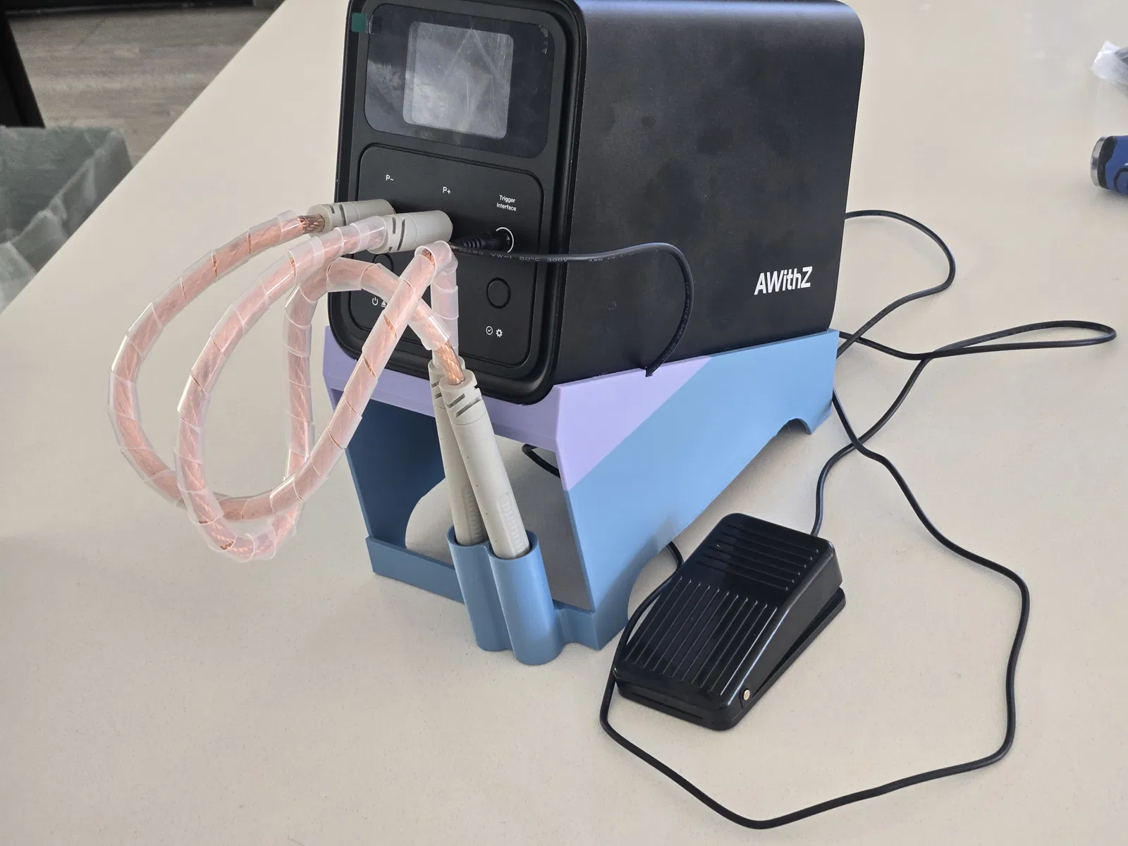 Đế nghiêng cho AwithZ P90C/ P120D, giúp dây leads nằm sát khu vực làm việc hơn, và dễ nhìn màn hình cũng như thao tác phần cài đặt hơn nhiều.