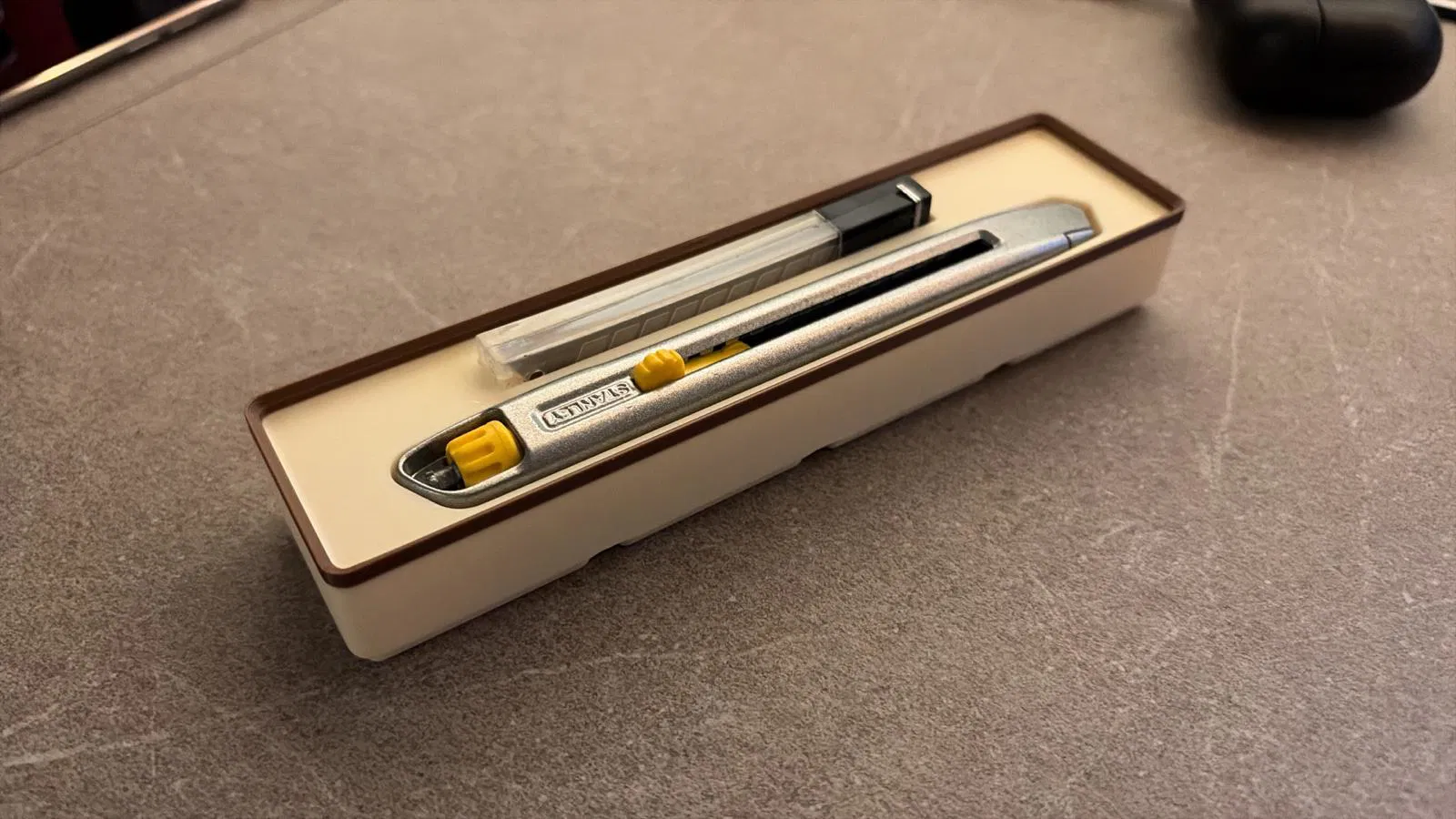 Insert Gridfinity dành cho dao rọc giấy Stanley 10-095 kèm hộp lưỡi thay.