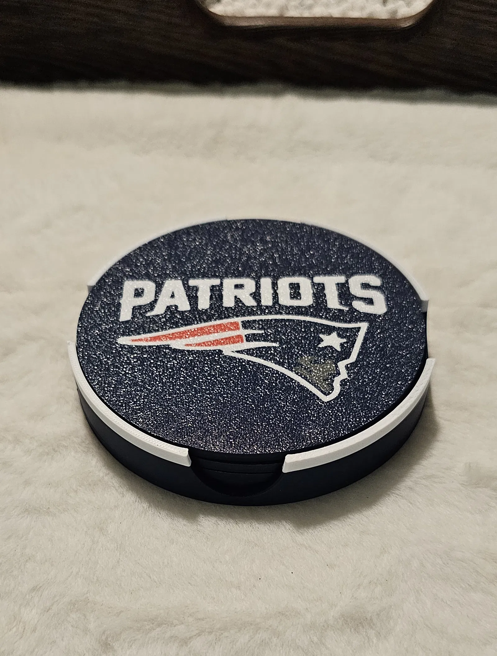 Khay/đế đựng lót ly Patriots (Patriots Coaster Holder), thiết kế để gom gọn và cất giữ bộ coaster Patriots. Mẫu này dựa trên bộ coaster mình tìm thấy trên Printables.