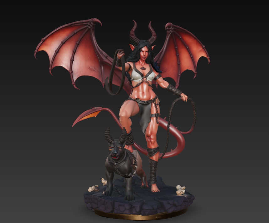 #SuccubusDomina #Hellhound #FantasyMiniature #TabletopBoss #DnD #Pathfinder #DemonMistress #Whip #3DPrintFigure #DarkFantasy