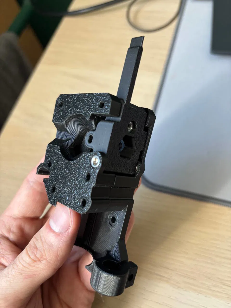 Bản nâng cấp extruder cho Original Prusa MK3S+ dùng cùng MMU3 nhằm tăng độ ổn định khi đổi màu. Idler đổi trục quay và chimney đảo ngược giúp hệ thống chắc chắn, tin cậy hơn, lắp gần như bản gốc.