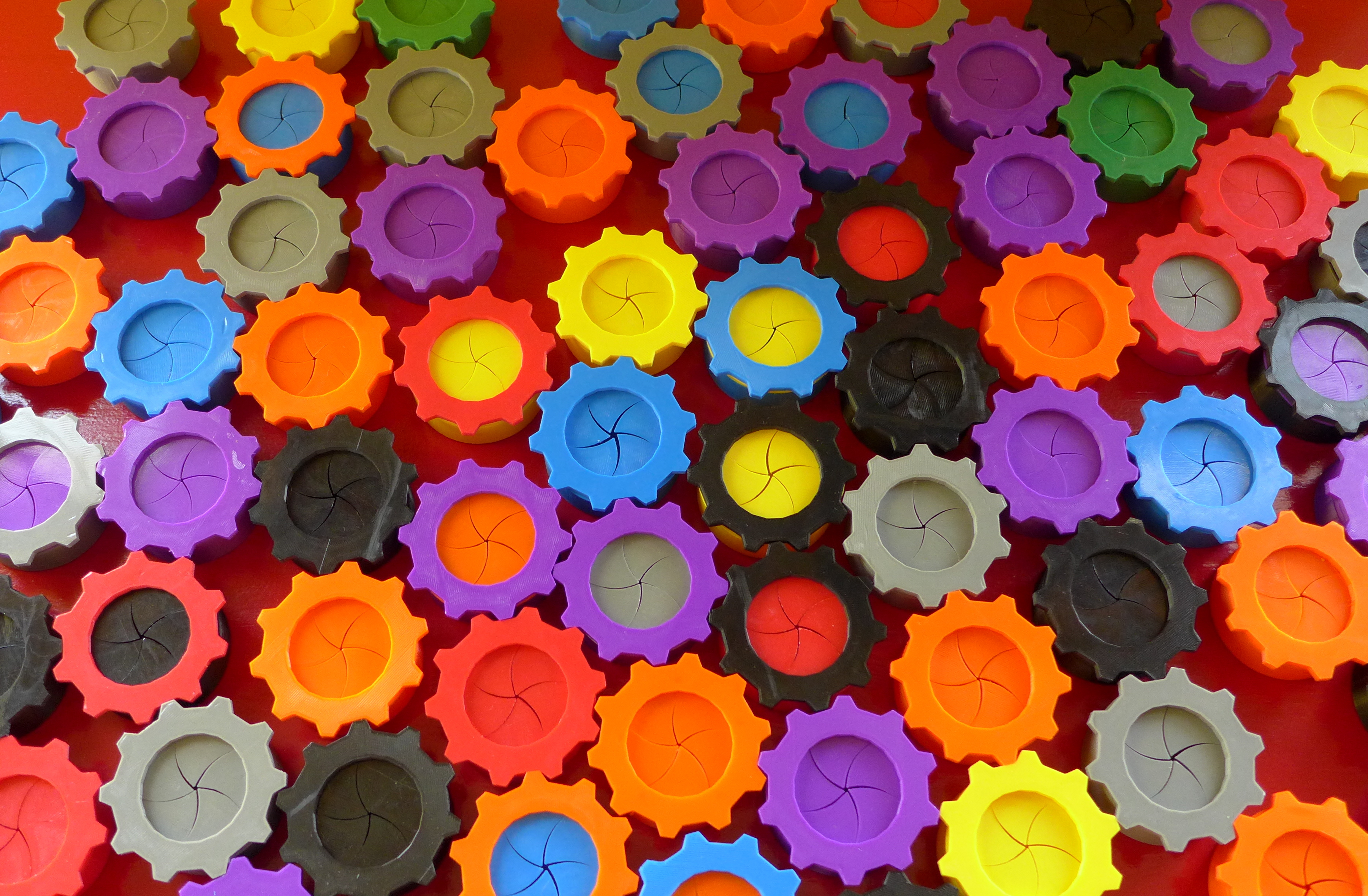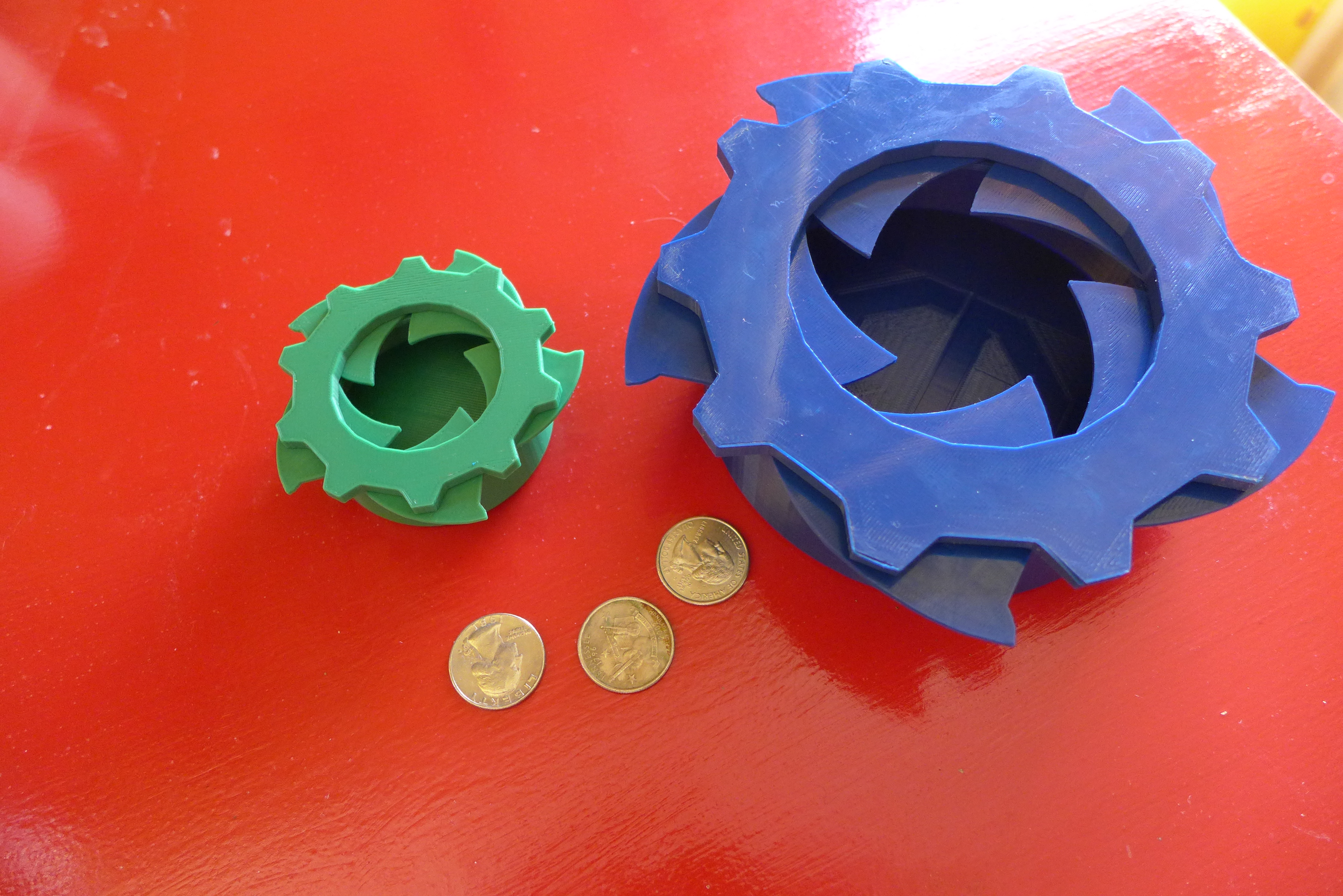 Iris Door Box là hộp đựng đồ lặt vặt có cơ chế cửa iris. Mẫu có 3 đường kính và 2 chiều cao mỗi loại; do dung sai và phụ thuộc hardware nên không khuyến khích scale. Có PDF hướng dẫn lắp ráp.