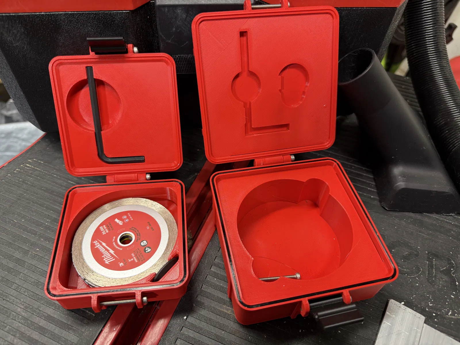 Bản remix caddy đĩa cho Milwaukee M12 3" Compact Cut Off Tool (2522), tối ưu để giữ hex key zin M12, ôm đĩa chặt hơn, gọn hơn và dễ lấy đĩa. Dùng 3 ốc M3x30; seal TPU tùy chọn.
