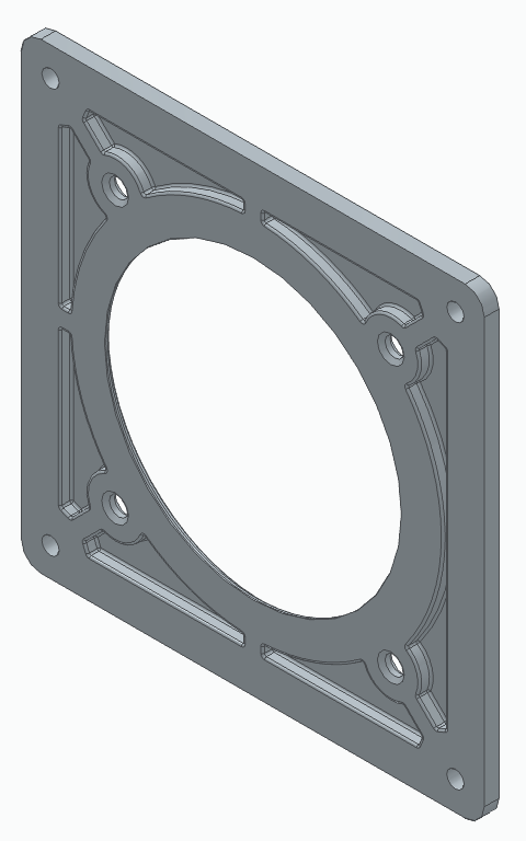 Adapter canh giữa giúp gắn quạt 80mm vào vị trí lỗ quạt trên case 120mm. Thiết kế Version 1, khuyến nghị in với ribs hướng lên để không cần thêm reinforcements.