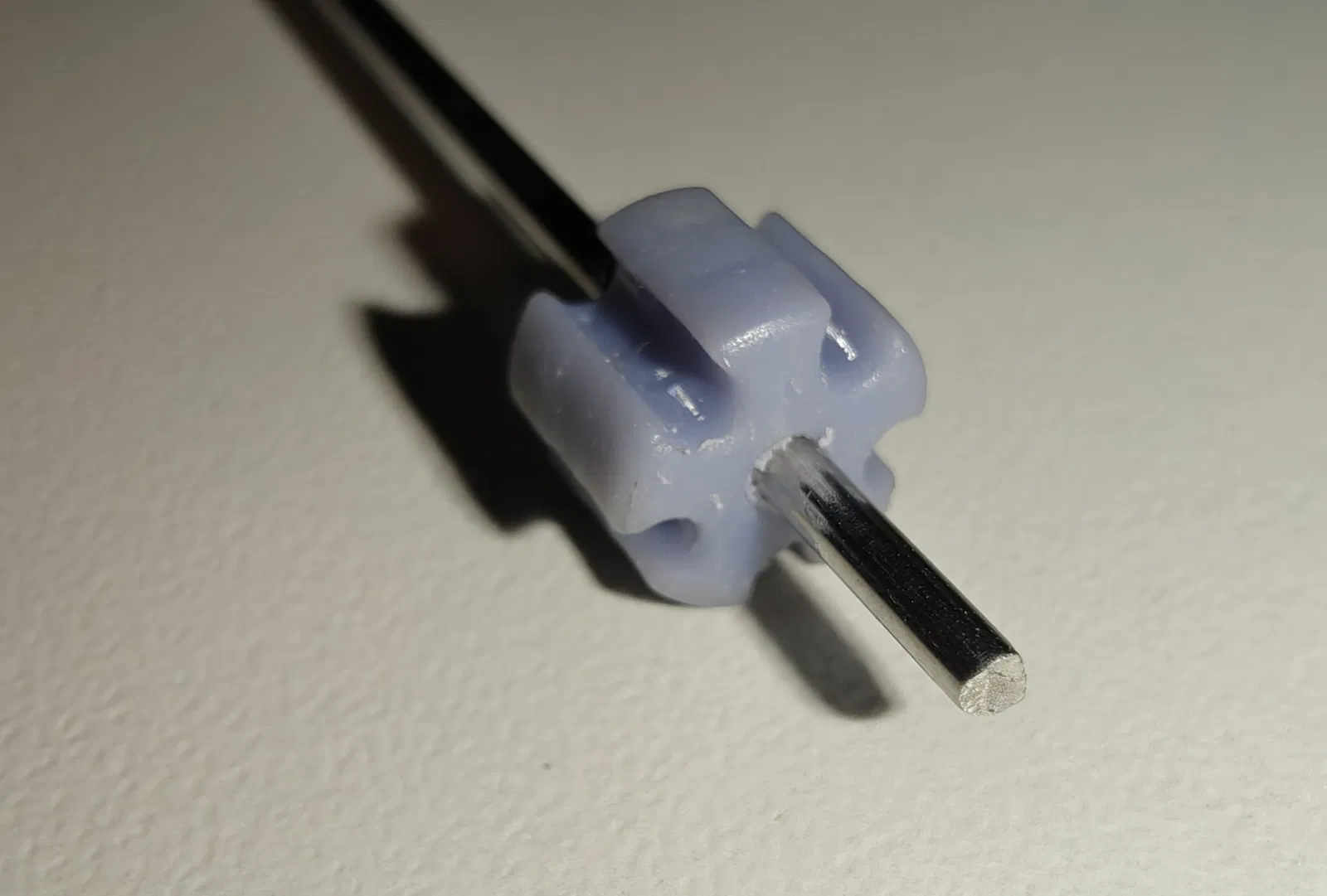 Cái miếng hình ngôi sao nhỏ sẽ định tâm và giữ một đoạn que hàn TIG 1.6mm (tốt nhất là dùng loại thép mạ đồng tiêu chuẩn để hàn chân VCC của LED vào).