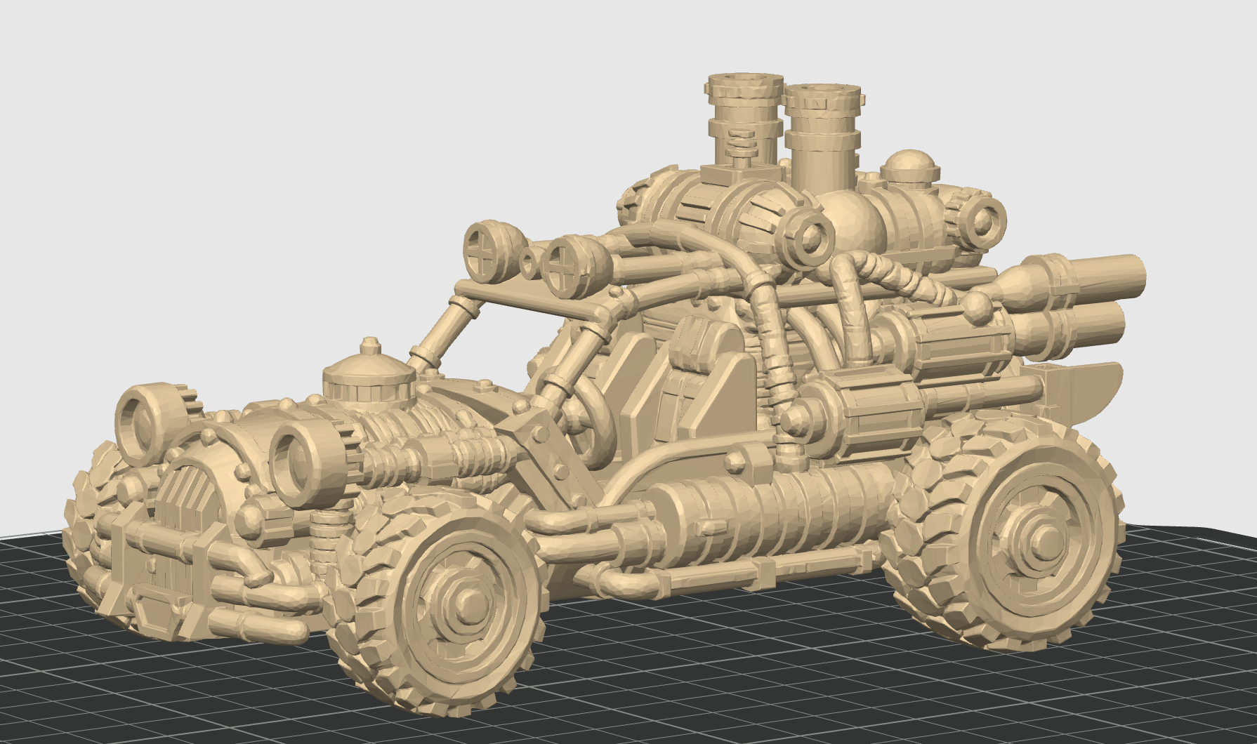 Mẫu 3D “Xe Buggy Steampunk” với phong cách steampunk độc đáo, dáng xe buggy hầm hố và nhiều chi tiết cơ khí trang trí. Phù hợp để trưng bày, sưu tầm hoặc in 3D theo nhu cầu.