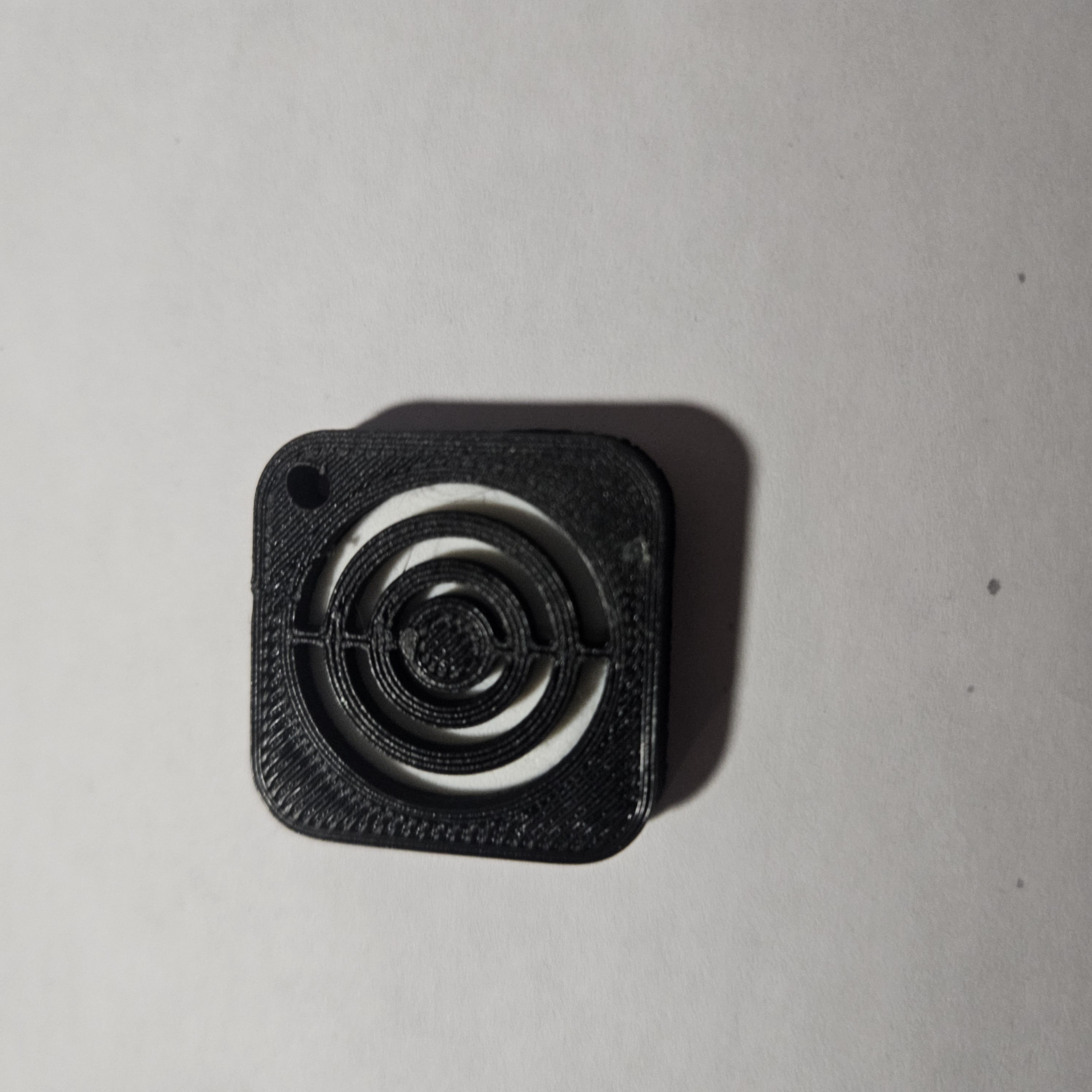 Đây là logo của Zen Browser, thiết kế để in 3 phần. Vòng tròn bên trong nên in màu trắng, còn 2 phần bên ngoài nên in màu đen. Lỗ ở góc là khoan thêm sau khi in.