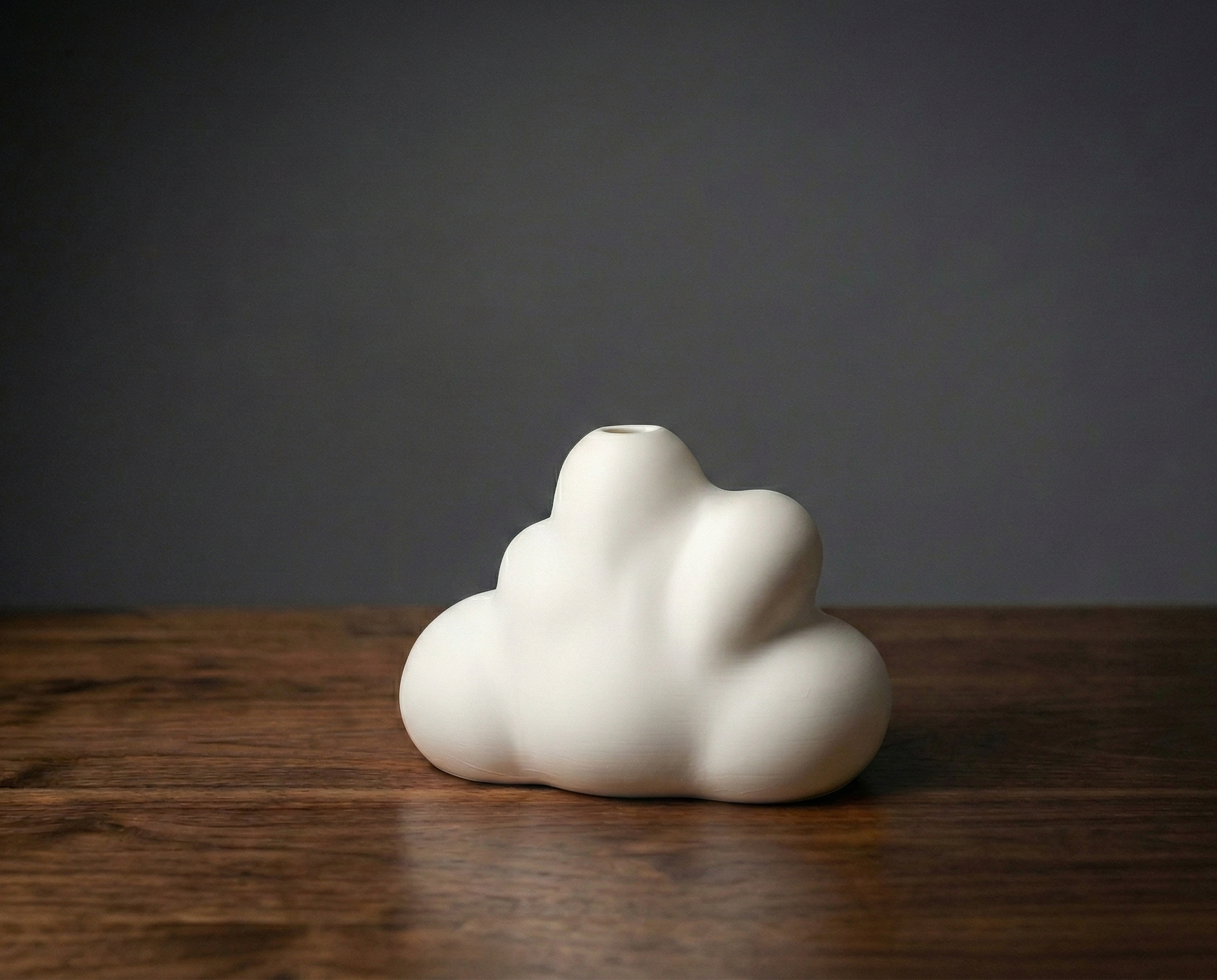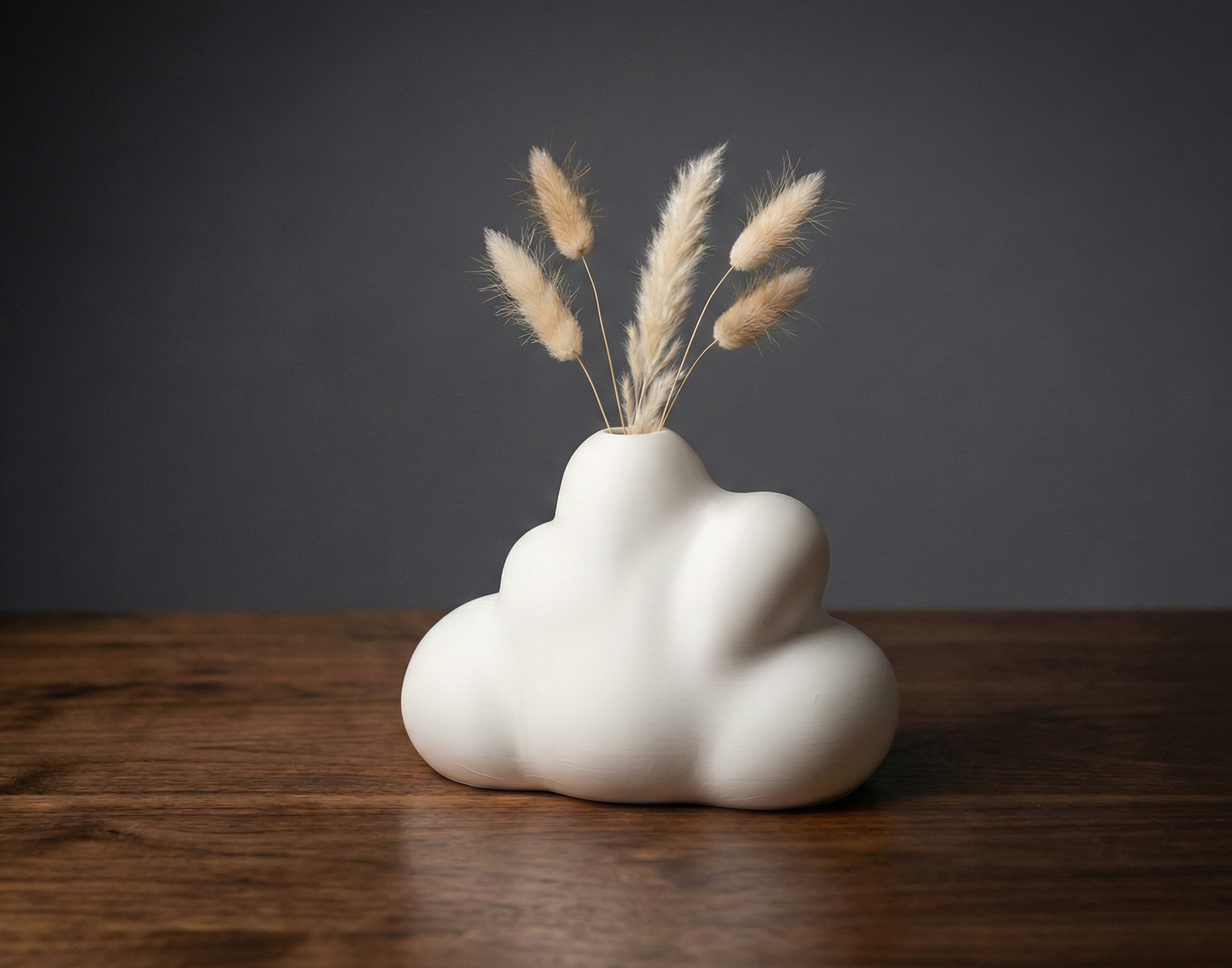 Cloud Vase là bình/chậu in 3D dáng đám mây mềm mượt, hợp decor bàn/kệ, chụp ảnh, set mood tối giản. In FDM nhanh, sạch, không cần support; khuyên dùng PLA Matte trắng/ivory và variable layer height.