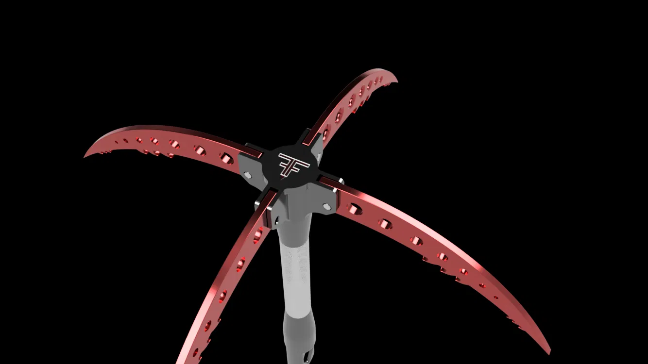Móc câu Grapple dạng đạo cụ dễ in, không cần supports. Có chốt bản lề tùy chọn hoặc dùng 4 ốc M4x10, kèm 2 kiểu lưỡi để chọn. Đã test với nozzle 0.6mm; dung sai có thể khác với 0.4mm.