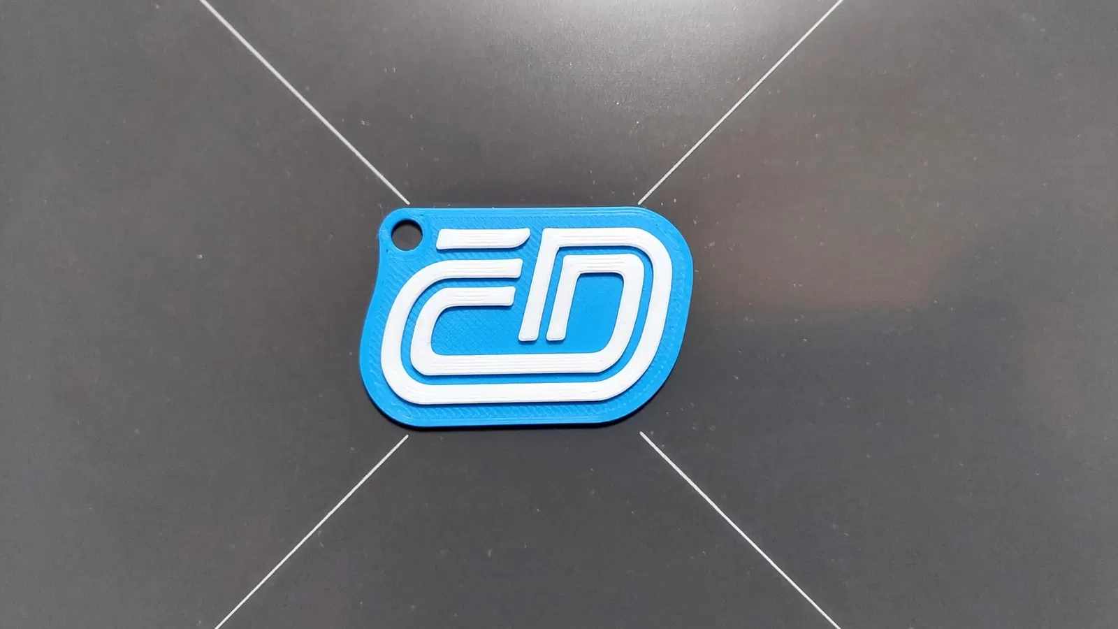 Móc khóa có phần nền phẳng và logo nổi, tối ưu cho in 2 màu. Dĩ nhiên bạn cũng có thể in 1 màu. Lỗ để gắn khoen chìa khóa đã được tích hợp sẵn trong model.