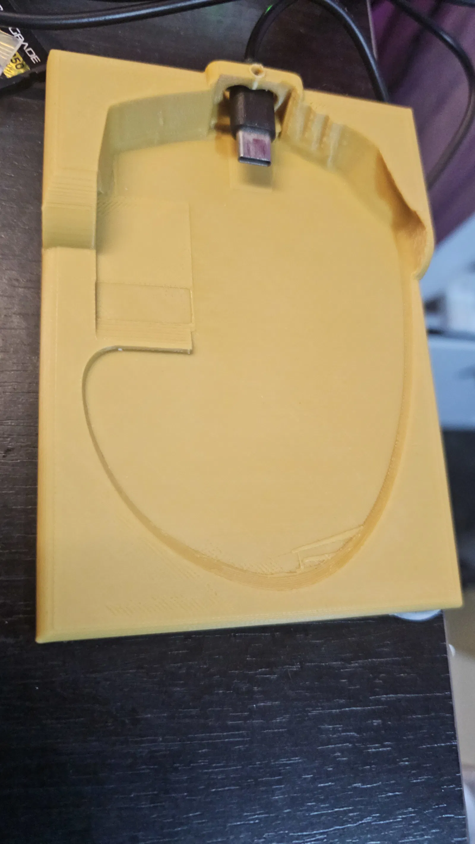 Dock sạc dạng trượt low-profile cho Corsair Scimitar Wireless, giúp đặt chuột xuống là tự sạc. Thiết kế thụ động, có chỗ cho USB-C/USB-C magnetic, in phẳng không cần supports; PLA+/PETG đều phù hợp.