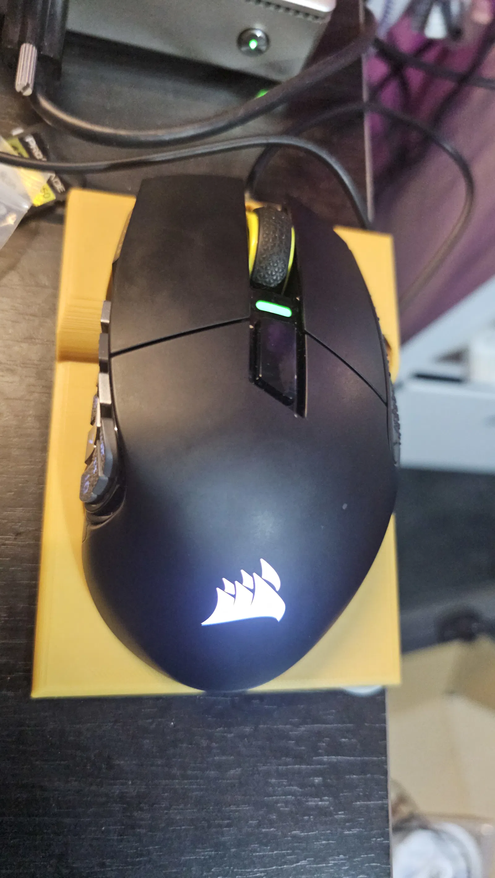 Mình hay để con chuột Corsair Scimitar Wireless hết pin — không phải vì sạc khó, mà vì phải nhớ. Tối đến cắm dây sạc nghĩa là phải nghĩ tới chuyện đó, mà chỉ nhiêu đó “lấn cấn” thôi là dễ bị bỏ qua.