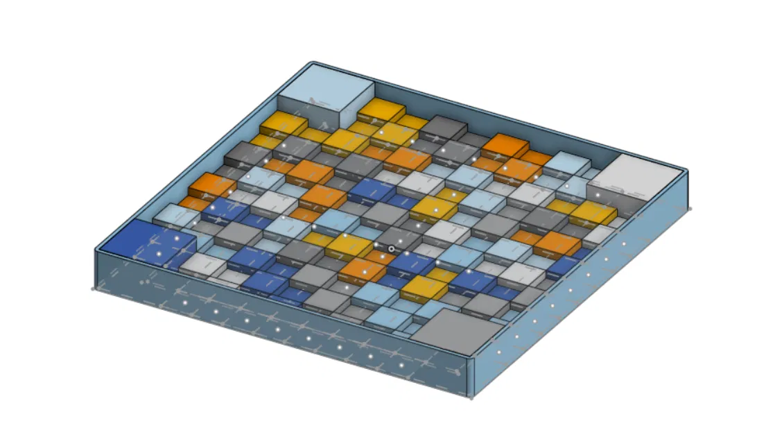 Mẫu bàn cờ vua 4 người (chỉ bàn cờ) dùng cho chơi trên chess.com. Thiết kế phù hợp quân cờ đường kính dưới 20mm, phân biệt ô đen/trắng bằng nhiều mức chiều cao, không cần AMS/MMU/Vortek.