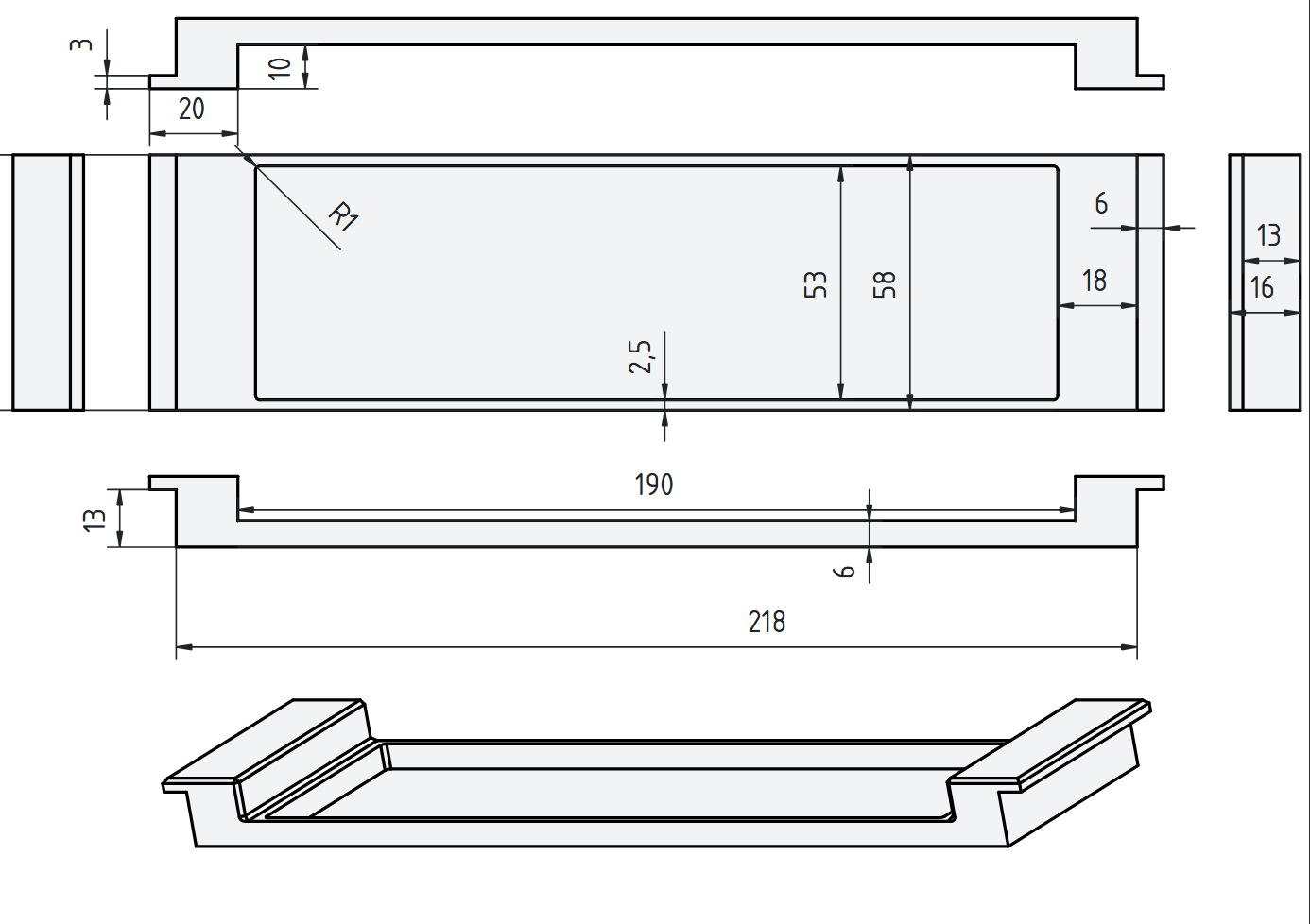 Viền (bezel) che phần khoảng trống xung quanh radio chuẩn 1DIN trên Audi A3 8L (~2000), giúp mặt taplo gọn gàng hơn. Nên dùng ironing cho top surfaces để bề mặt mịn giống nhựa zin trong xe.