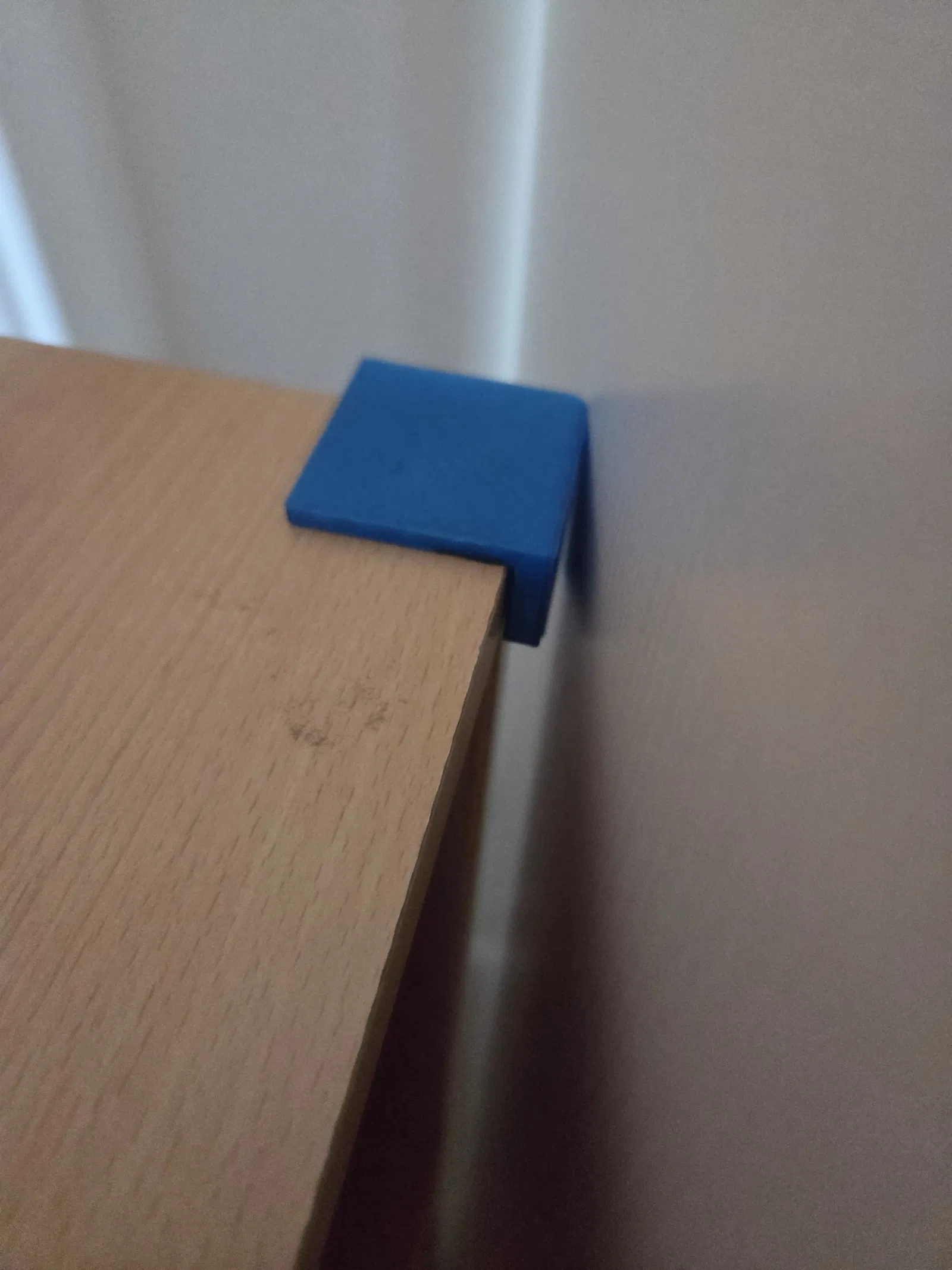 Miếng bảo vệ góc tiện dụng này làm từ TPU dẻo, dán lên góc tủ bằng băng keo hai mặt. Nó đóng vai trò như một chặn cửa hiệu quả, giúp cửa không bị đập vào tủ và đồng thời bảo vệ cạnh tủ.