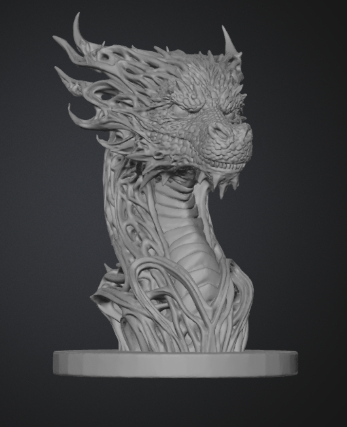 Mẫu tượng bán thân rồng với nhiều chi tiết tinh xảo, được tạo bằng AI và có kèm phần đế. Phù hợp để in 3D trưng bày, trang trí bàn làm việc hoặc góc sưu tầm.
