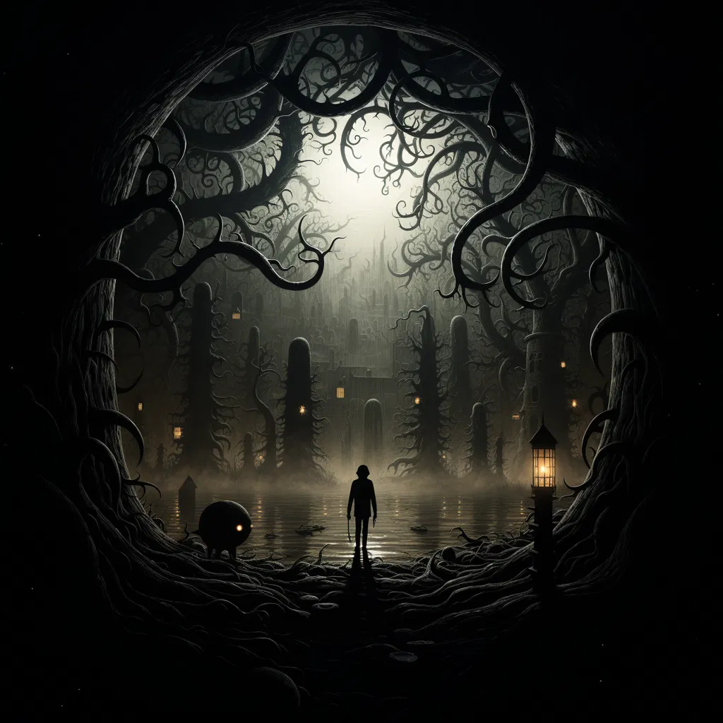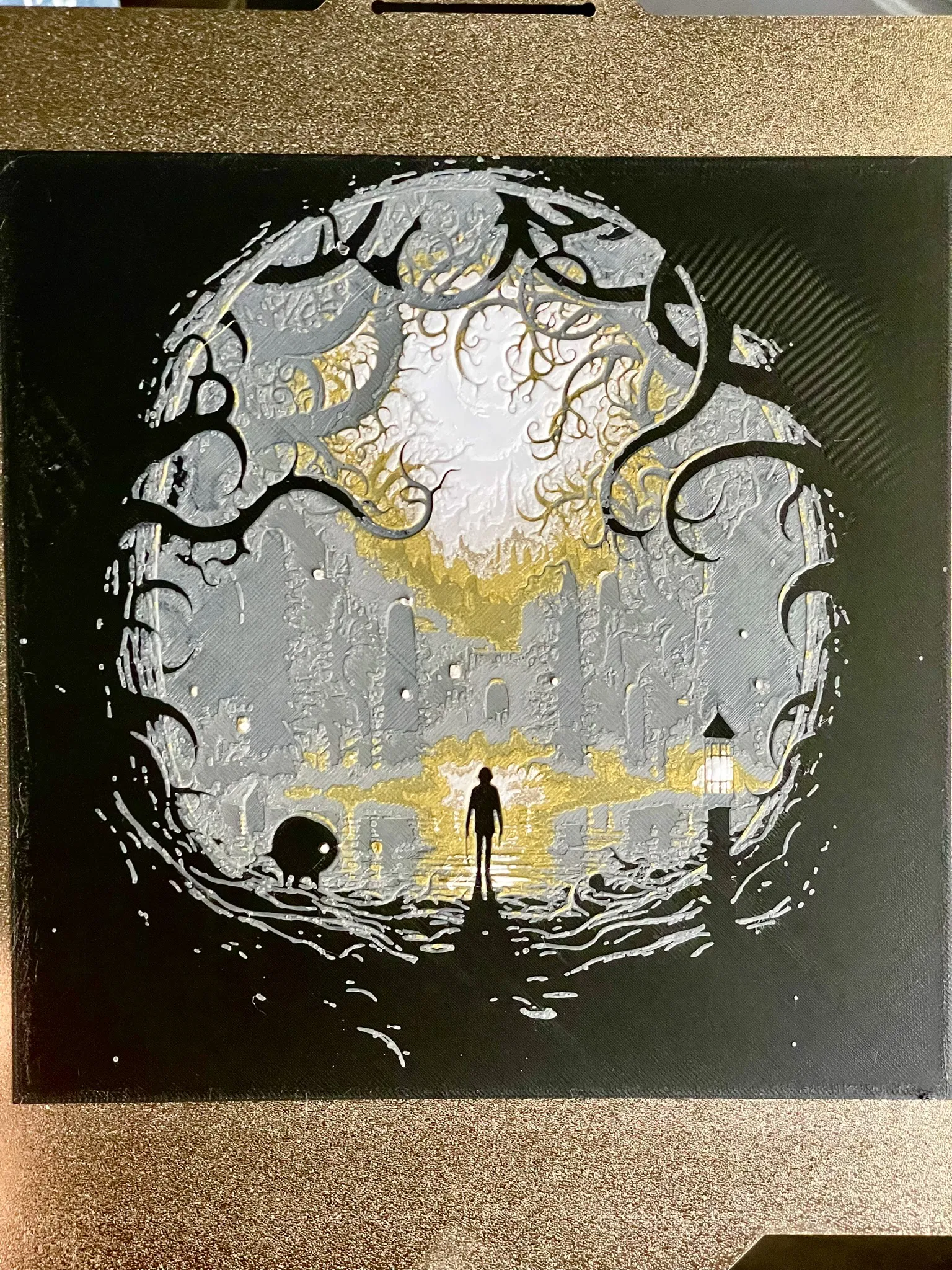 Đây là một gạch nghệ thuật treo tường 200 x 200 mà tôi đã làm cho thư viện nhà của mình. Nó được lấy cảm hứng từ tình yêu của tôi dành cho truyền thông kinh dị, và cảm giác phiêu lưu vào những chiều sâu không xác định của bóng tối.
