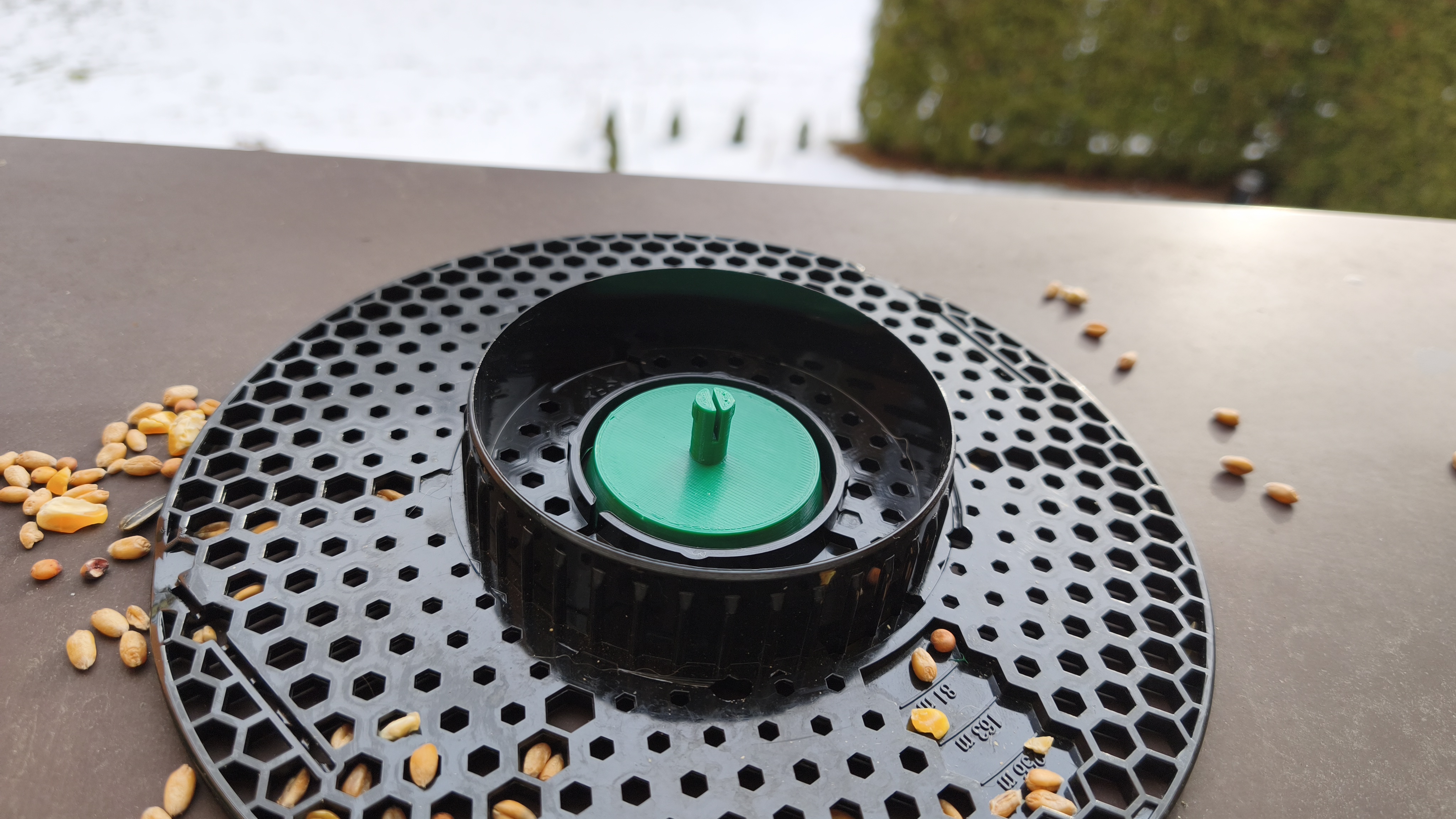 Đế (Base) – thêm một phần đế để máng ăn gài/click vào; có thể dán lên bệ cửa sổ bằng băng keo hai mặt.