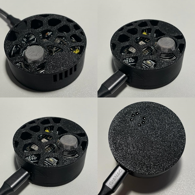 Lấy cảm hứng từ mấy mẫu case đã có sẵn trên mạng, mình tự thiết kế lại từ đầu. Mất khá nhiều bản prototype mới ra được như hiện tại, nhưng đúng là một bài toán thiết kế khá hay. Mình in với nozzle 0.4 và nó bấm khớp lại với nhau, không cần ốc, keo hay gì hết. Mình làm 2 loại nắp: một nắp kín và một nắp có họa tiết voronoi.