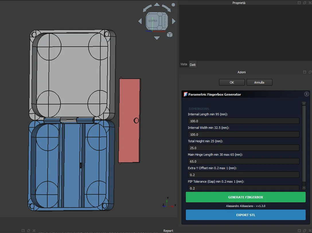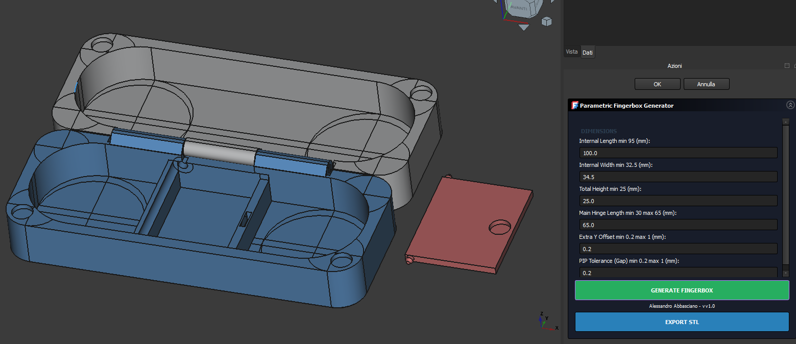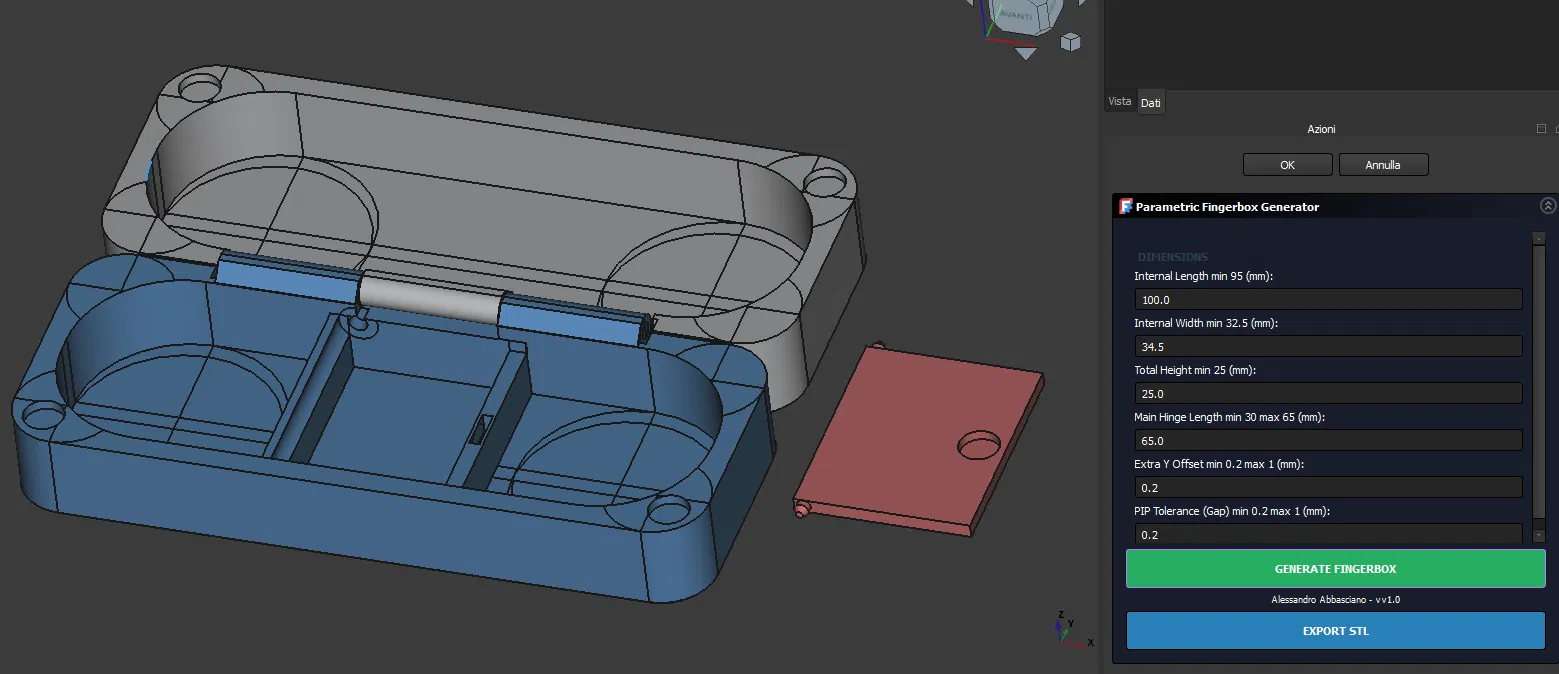 Fingerbox v1.0 là hộp đựng fingerboard dạng parametric Print-in-Place, vừa deck 32mm đến bản rộng. Có ngăn phụ kiện snap-fit, khóa nam châm neodymium, in không cần support; kèm STL sẵn và macro FreeCAD để tùy kích thước.