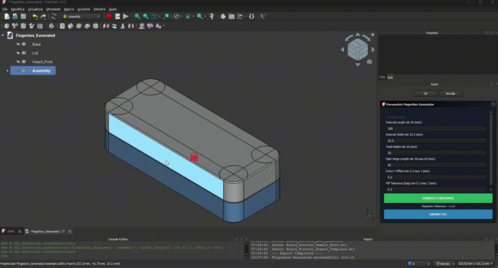 * Chỉ cần tải file .zip, mở macro FreeCAD đi kèm, rồi chỉnh “Internal Length” và “Internal Width” cho đúng.
