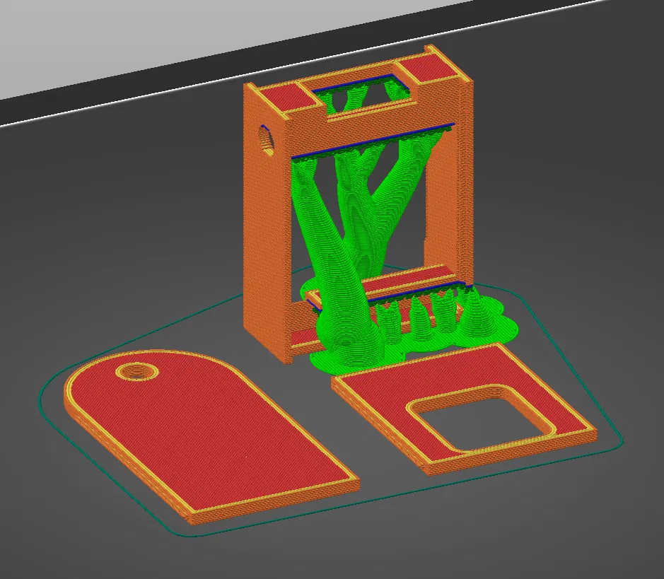 Mình dùng PrusaSlicer với organic supports. Mặc định Prusa có vẻ còn muốn dựng thêm một “cây” support cho lỗ nút reset. Mình đã block phần đó lại vì chỗ overhang đó chắc vẫn ổn.