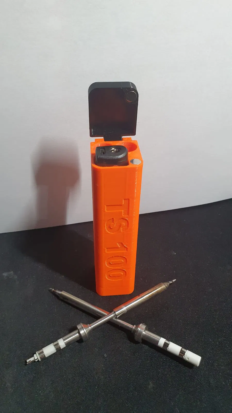 Hộp đựng TS 100 phiên bản V2 siêu nhỏ gọn, có ngăn để vừa 2 mũi tip. Lắp bản lề bằng 2 nam châm 6x3 và 1 kẹp giấy, tiện mang theo và cất gọn.