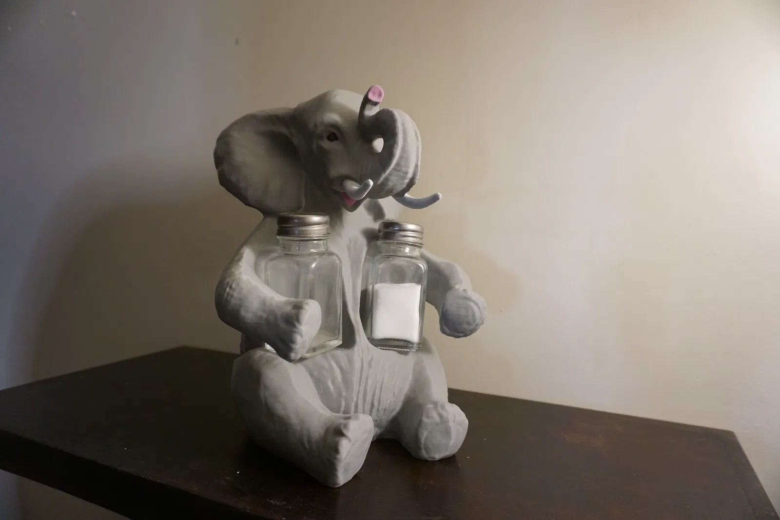 Mẫu giá đỡ lọ muối & tiêu hình con voi, được dựng lại từ bản scan của một món đồ thật. File đã được phóng to nhẹ để vừa với các lọ rắc muối/tiêu của mẹ, phù hợp để in 3D và trưng bày.