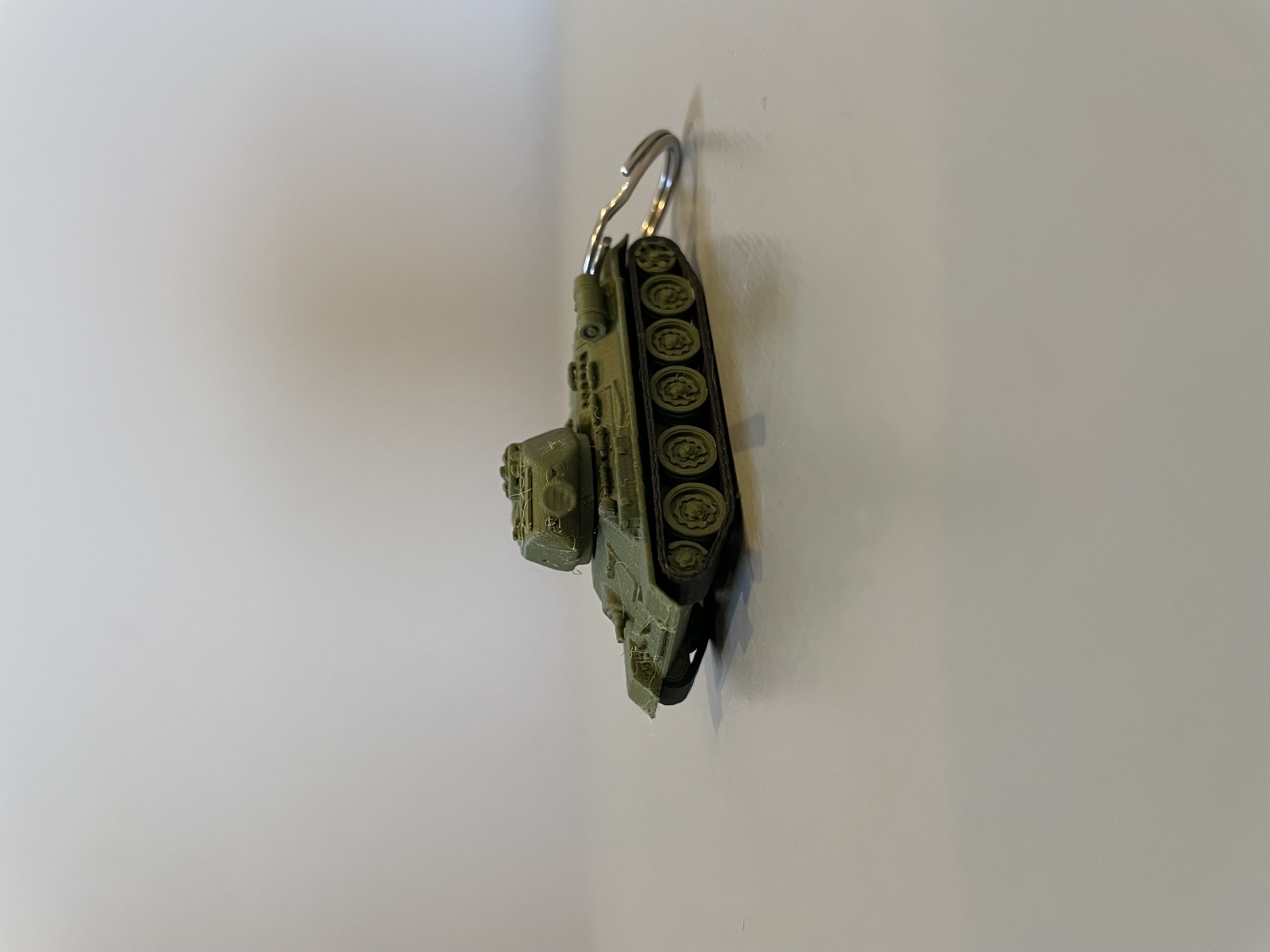 Mẫu móc khóa xe tăng T-34 được chỉnh sửa để in nhỏ vẫn bền và nhìn “ra chất” xe tăng. Nòng súng được làm dày, tháp pháo tối ưu cho độ bền khi dùng làm keychain; các phần có thể in lại nhanh để dễ sửa.