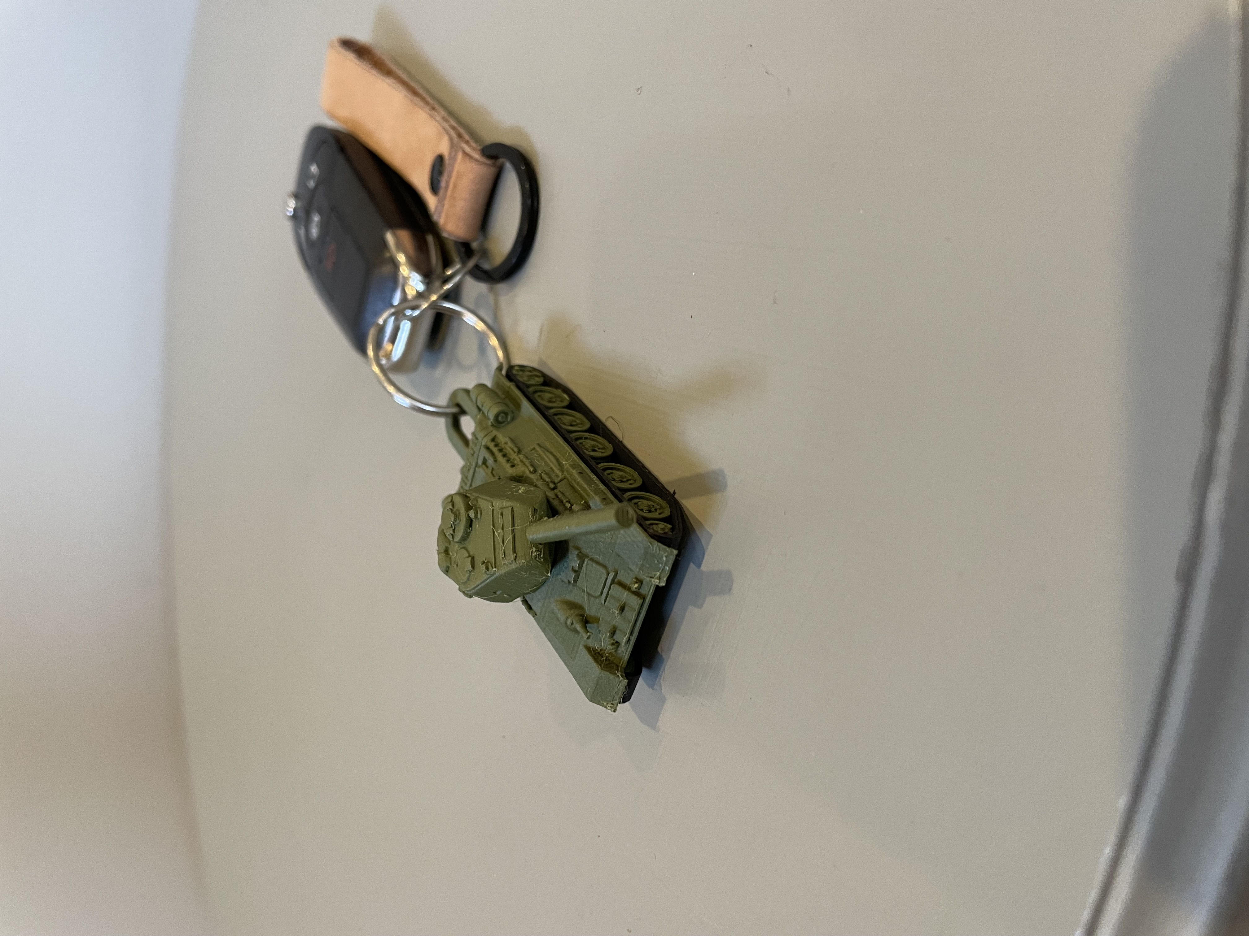 Sau khi bỏ khá nhiều thời gian tìm kiếm mà không ra gì, mình nhận ra là gần như không có mẫu móc khóa xe tăng nào vừa “ra dáng” vừa bền để dùng hằng ngày. Nhu cầu này thì quá rõ rồi, nên trước đây mình từng thử khắc phục bằng mẫu móc khóa xe tăng Tiger II của mình. Tiếc là, y như Tiger II ngoài đời, thiết kế đó lại thất bại với mục đích ban đầu. Bánh xe gãy rụng, nòng súng bị tách làm hai, mà xe thì lại nhỏ quá nên nhìn không “ngầu”. Vậy là mình quay lại bàn vẽ và thiết kế lại hoàn toàn một mẫu móc khóa xe tăng mới dựa trên huyền thoại T-34.