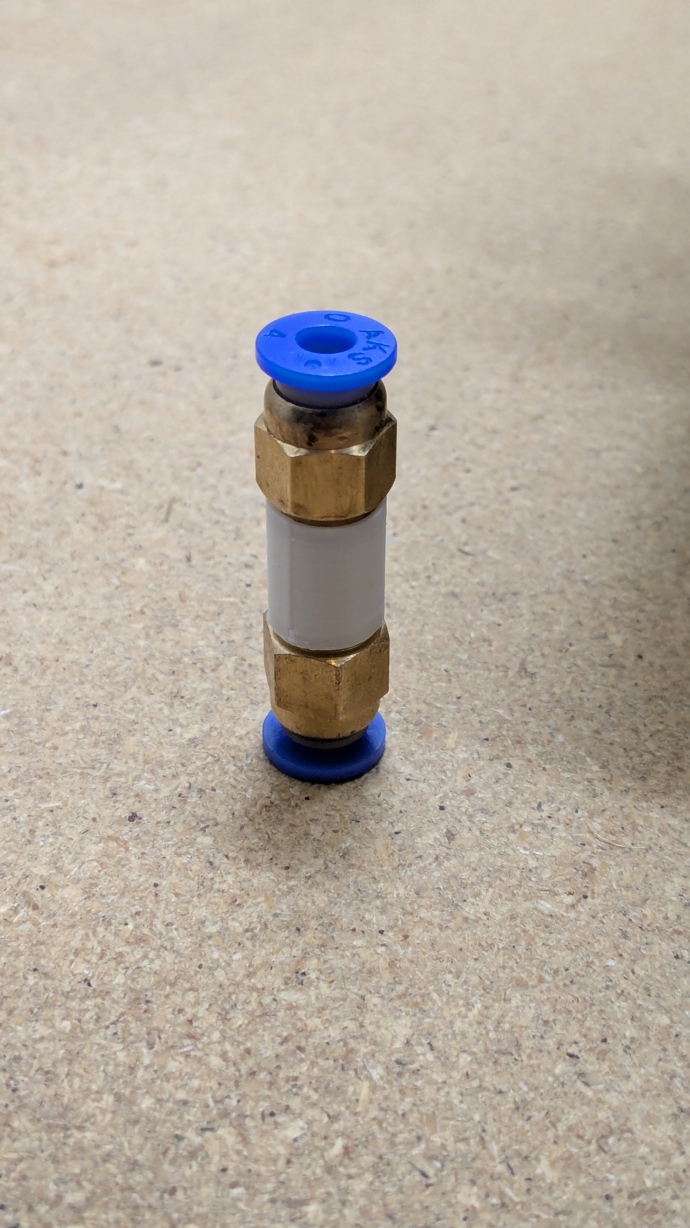 Đầu nối dạng ren để nối hai đầu nối ống PTFE M6 (PTFE4mm). Thiết kế in dọc, cần một ít supports; nếu in multimaterial thì supports dễ tháo, bề mặt in ra gọn và đẹp.