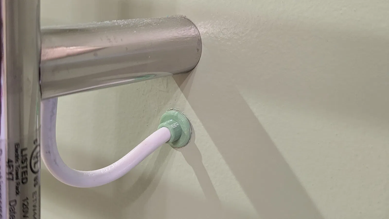 Nắp PETG nhỏ giúp cố định dây điện trong tường để dẫn tới hộp điện. Khi in nhớ bật support trên print bed. Muốn đổi đường kính thì chỉ cần scaling theo kích thước phù hợp.