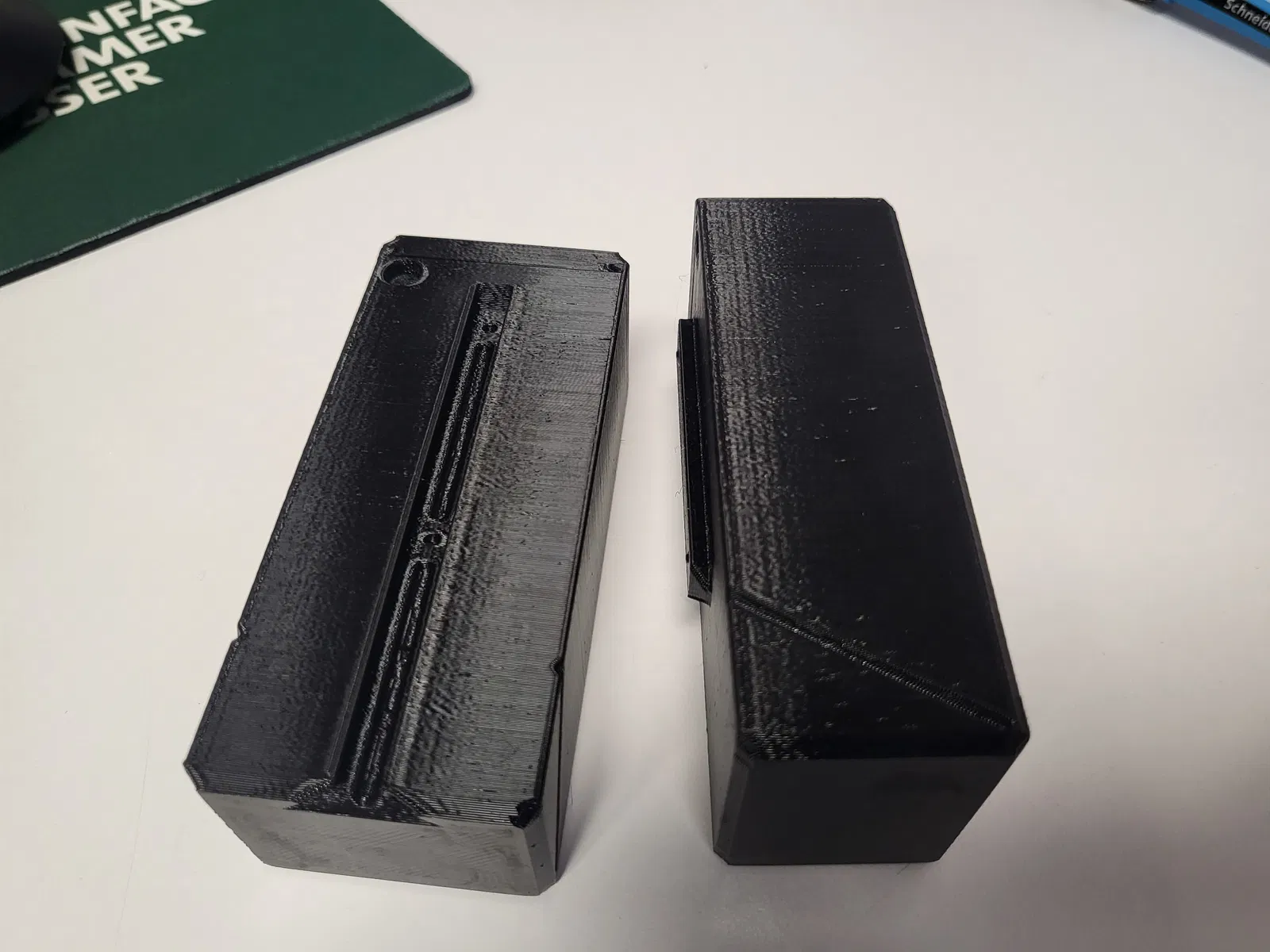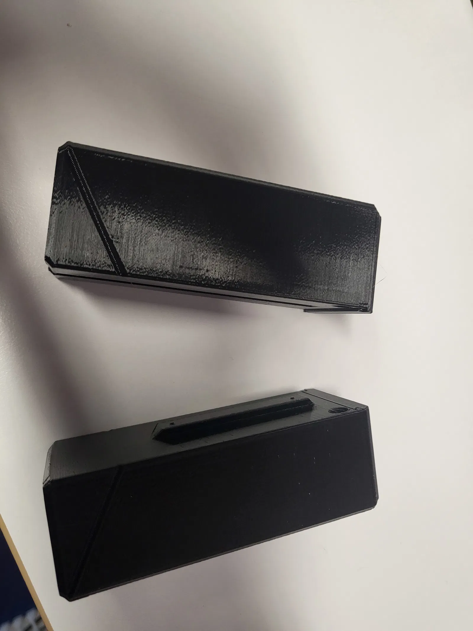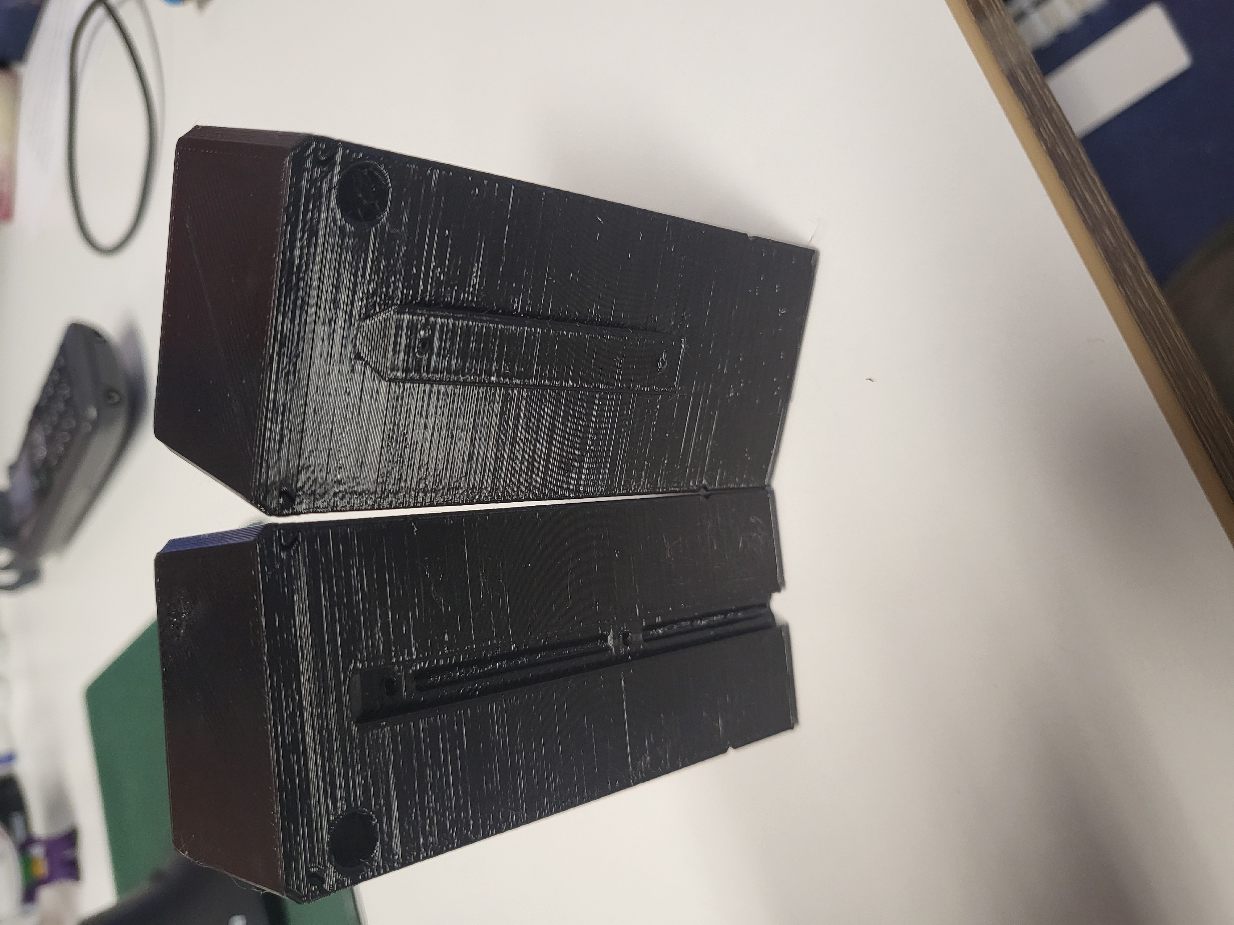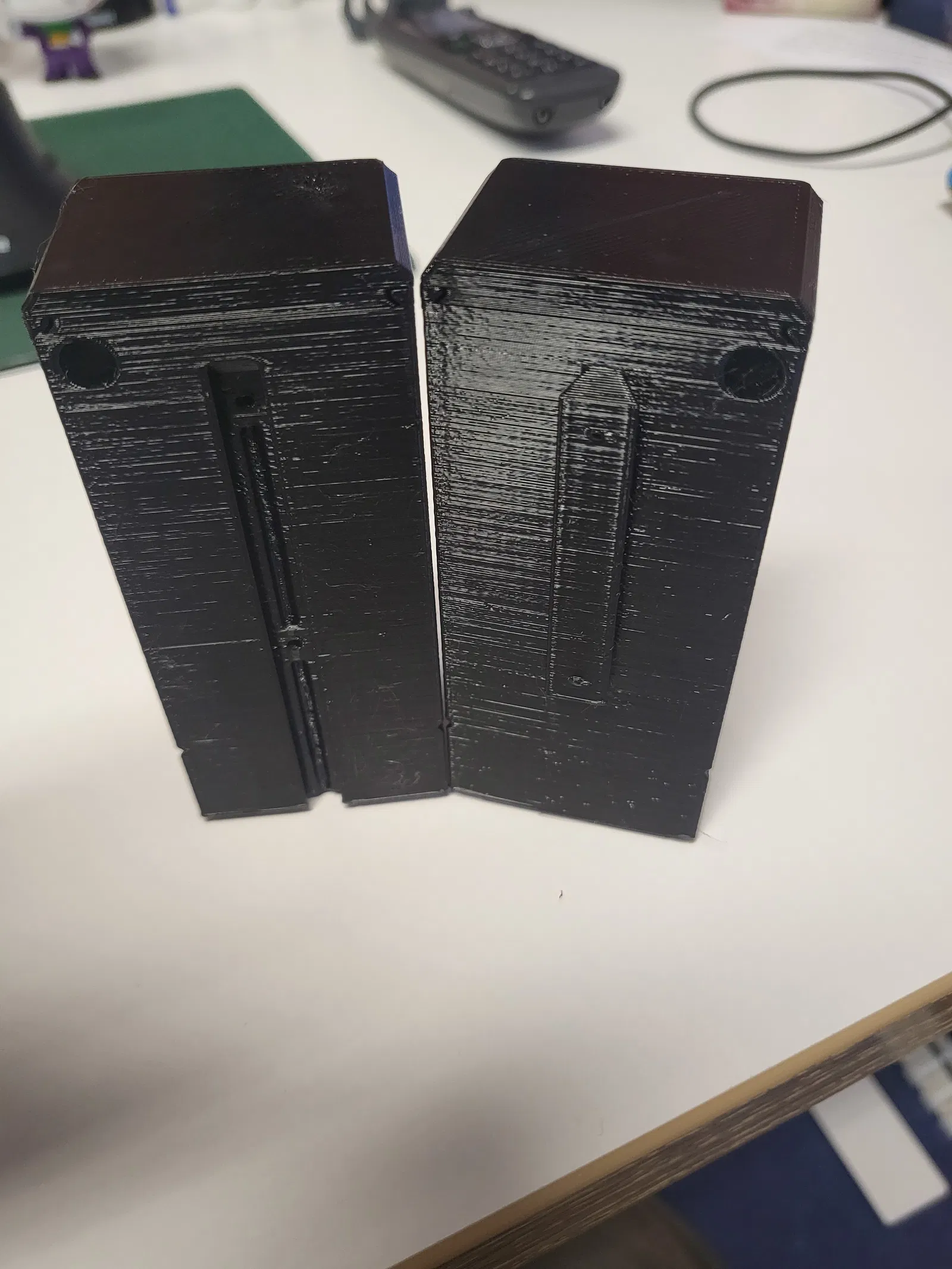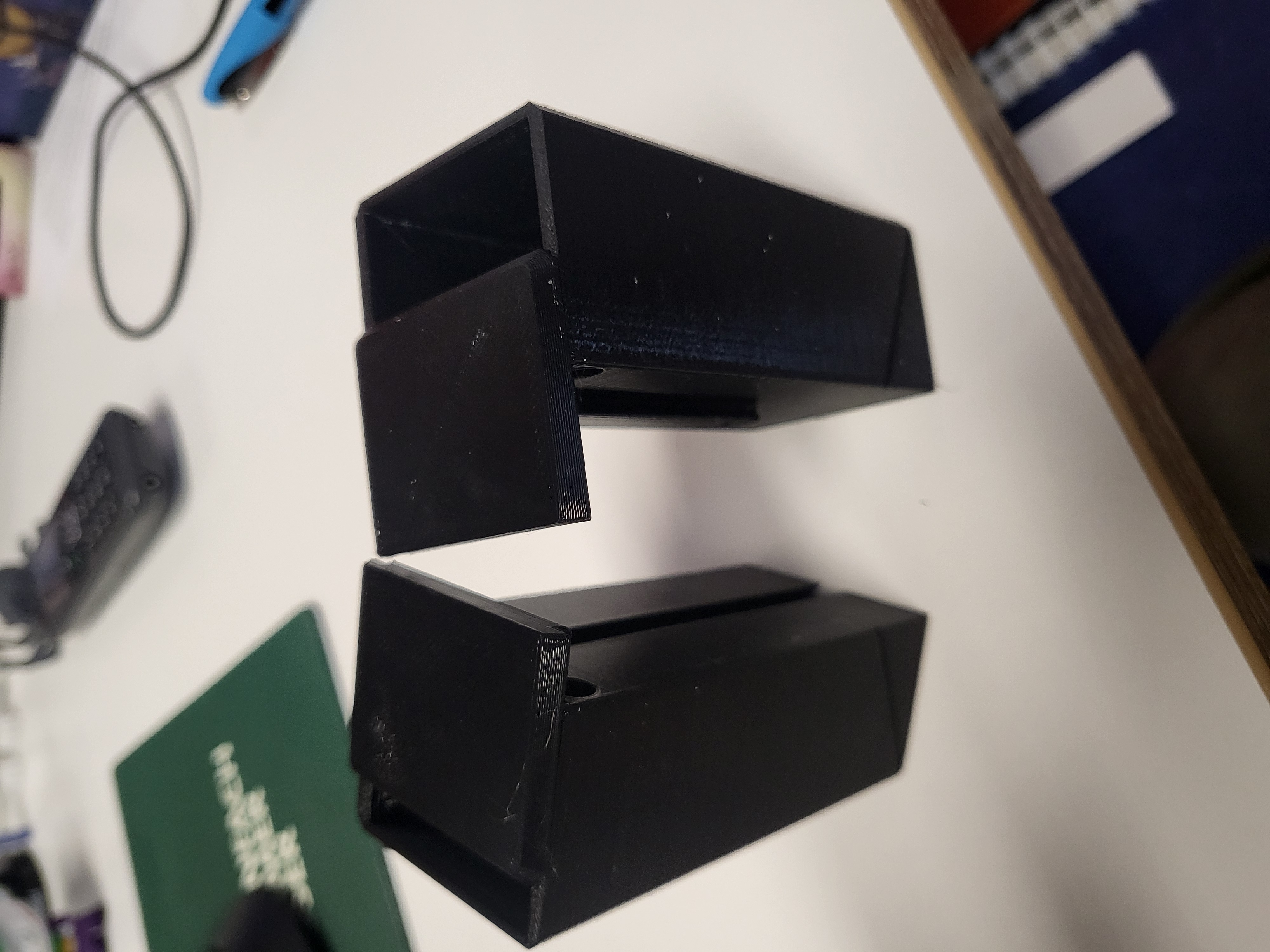 Mình lấy token box của @AP_Design rồi gắn phần ngàm/mounting từ deck box của anh ấy lên một trong hai cái nắp. Nhờ vậy hai cái nắp sẽ tự khóa giữ lẫn nhau. Mình dùng hộp còn lại để phân loại token theo giá trị “minus” và “plus”. Với ai thấy cái rail/chốt trượt chưa đủ chắc, mình có thêm các lỗ để gắn magnet nhằm tăng độ ổn định.