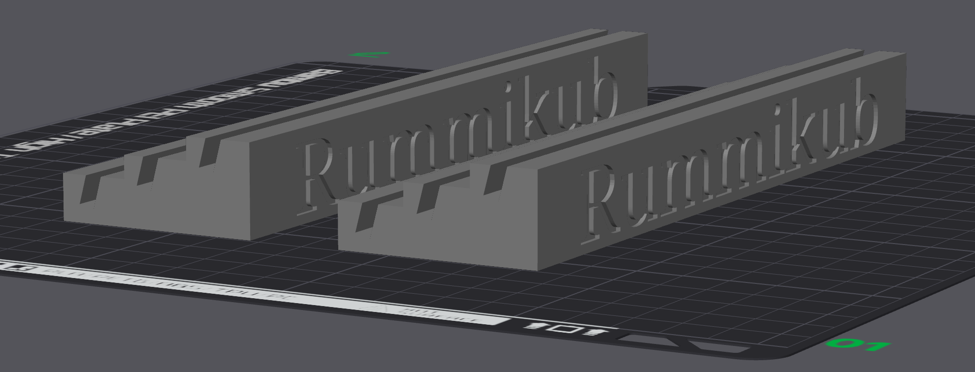 Giá đỡ Rummikub 3 hàng đơn giản mà hiệu quả, cho nhiều không gian để xếp tile gọn gàng. Thiết kế bằng Tinkercad, in trên Bambu Lab A1 với SUNLU PLA. Kích thước 175×45×20 mm.