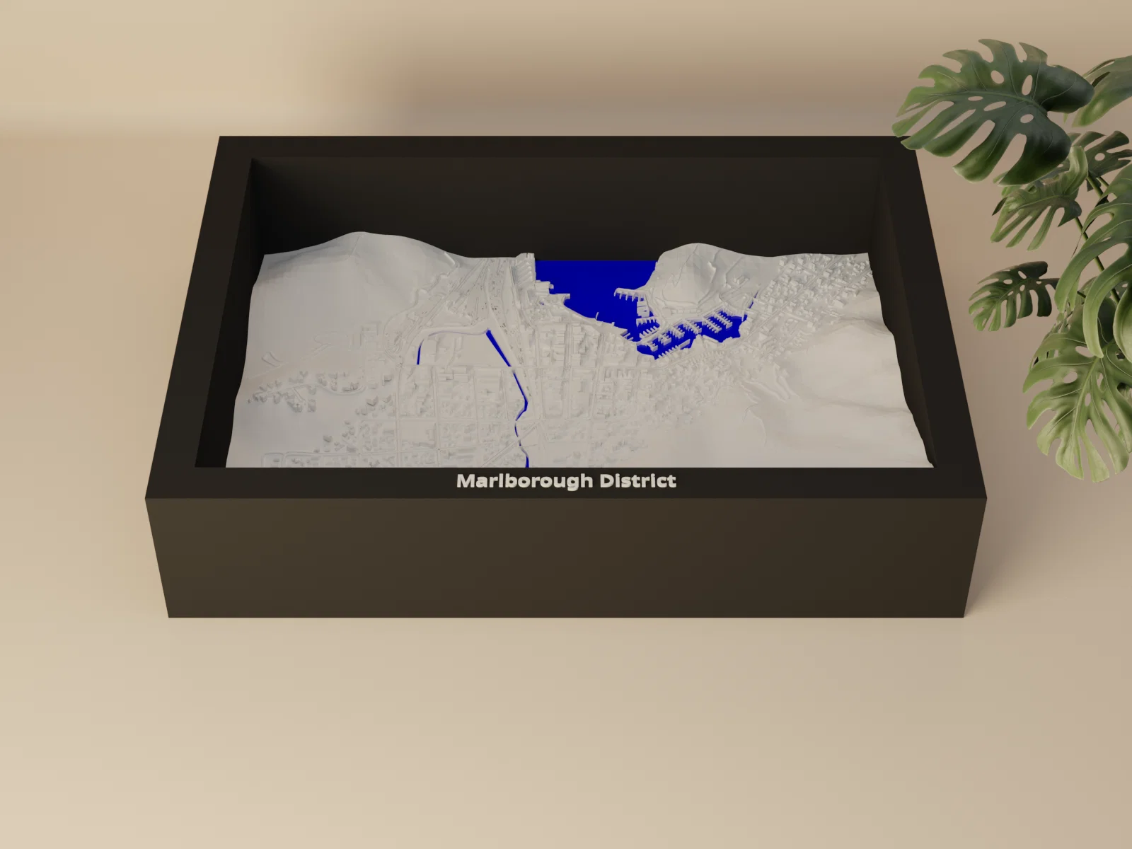 Tái hiện vẻ đẹp cảnh quan thành phố Picton với mô hình địa hình thu nhỏ này! Mẫu 3D này đại diện khu vực địa lý quanh tọa độ -41.292, 174.007 (LatLng).